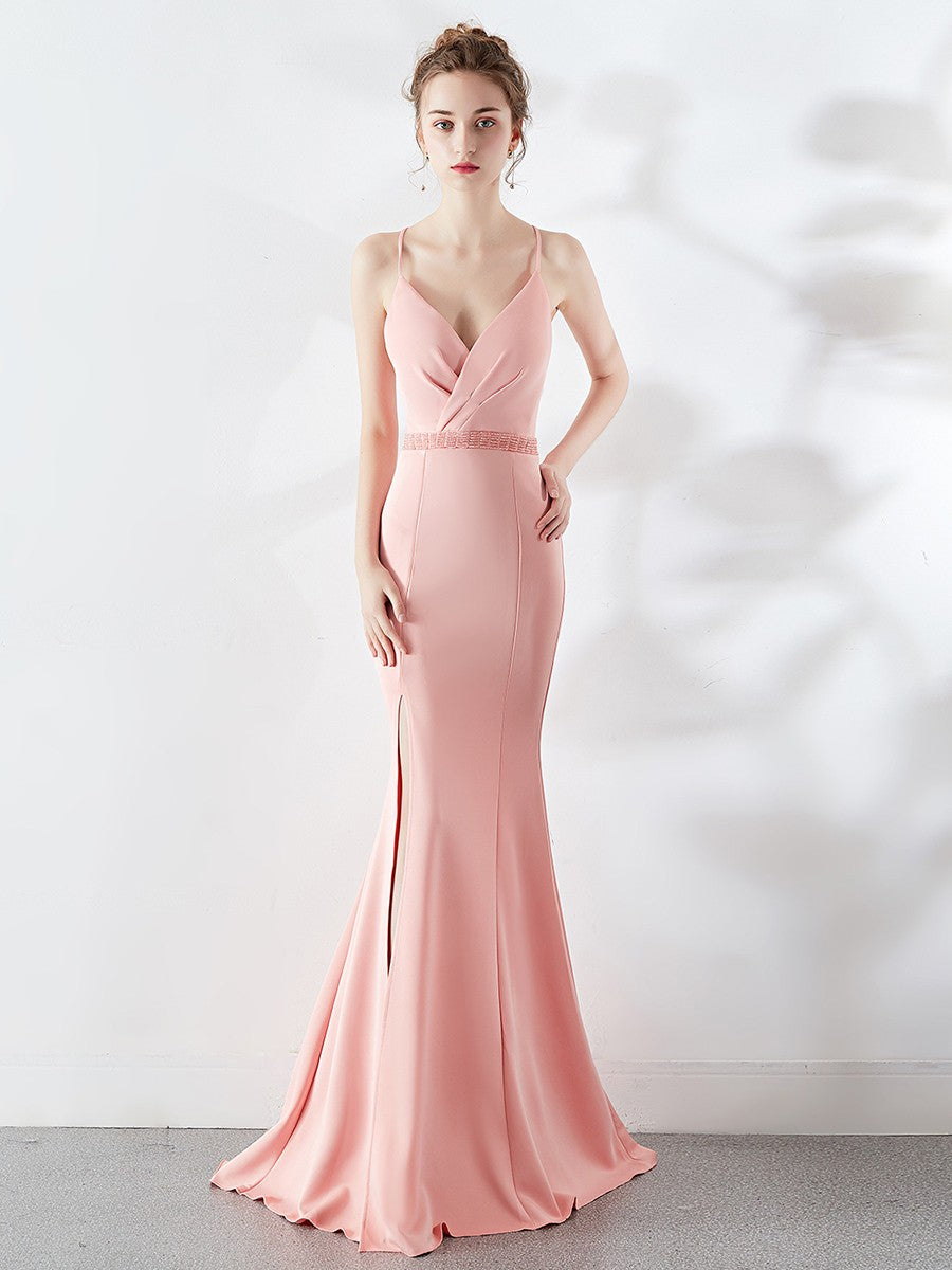 فستان سهرة طويل مثير بأطراف منقسمة بلون موحد من Ma'am