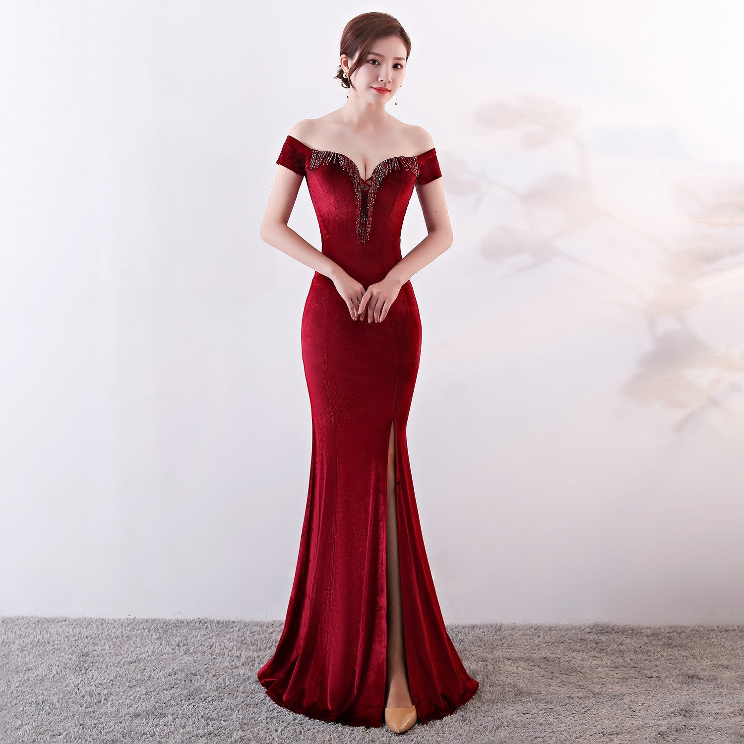 سيدتي حفلة نهاية الانقسام فستان سهرة مثير أسود طويل الطراز مخملي جو نحيف