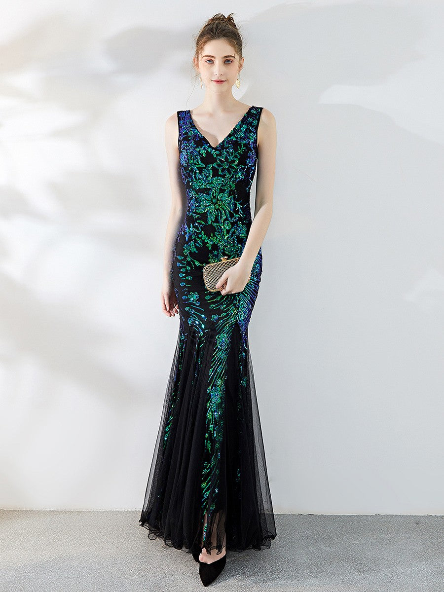 سيدتي فستان سهرة طويل مثير مزين بالترتر والتطريز من جاكوبس
