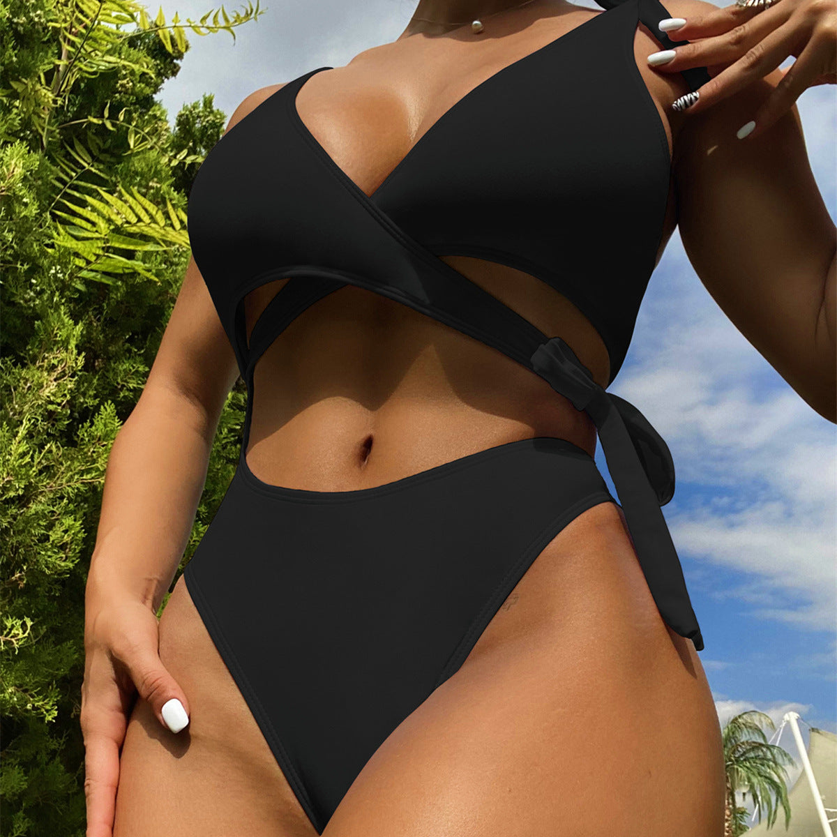 ملابس سباحة جديدة من قطعة واحدة بيكيني مثير ملابس سباحة أوروبية وأمريكية للسيدات ملابس سباحة مجوفة بلون واحد