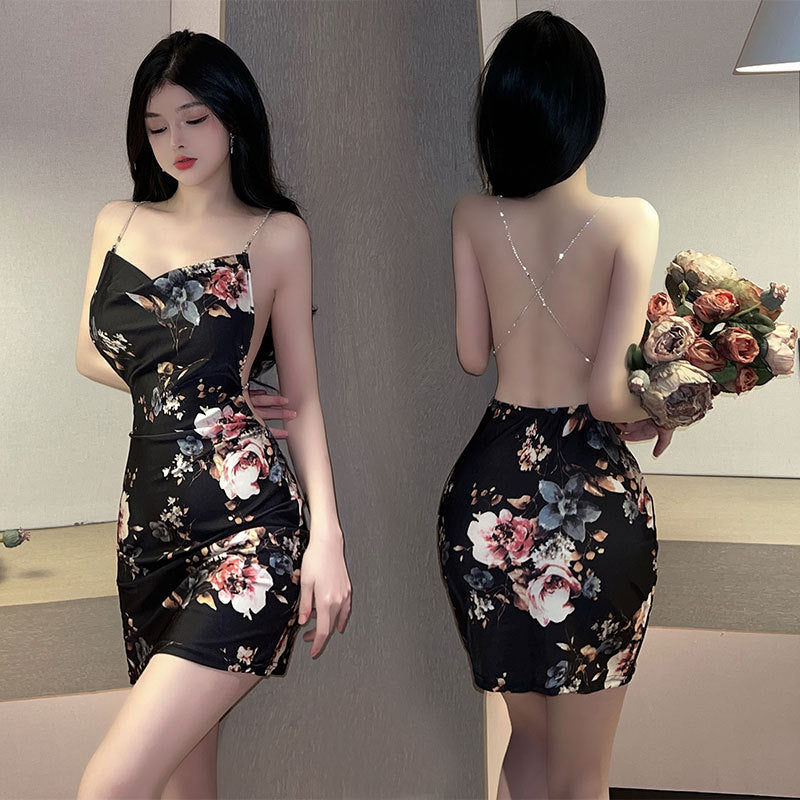 مطبوعة بيجامة نسائية مثيرة قميص نوم قصير بدون ظهر