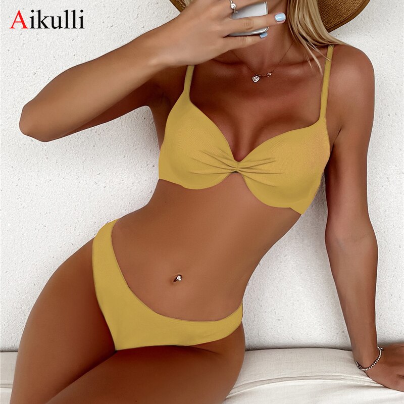 مثير بلون Underwire البيكينيات المايوه النساء ملابس السباحة 2022 الصيف الشاطئ مجموعة الإناث قطعتين بيكيني لباس سباحة