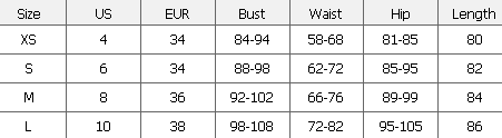 | حجم المنتج | التمثال/الصدر (سم) | طول التنورة (سم) |