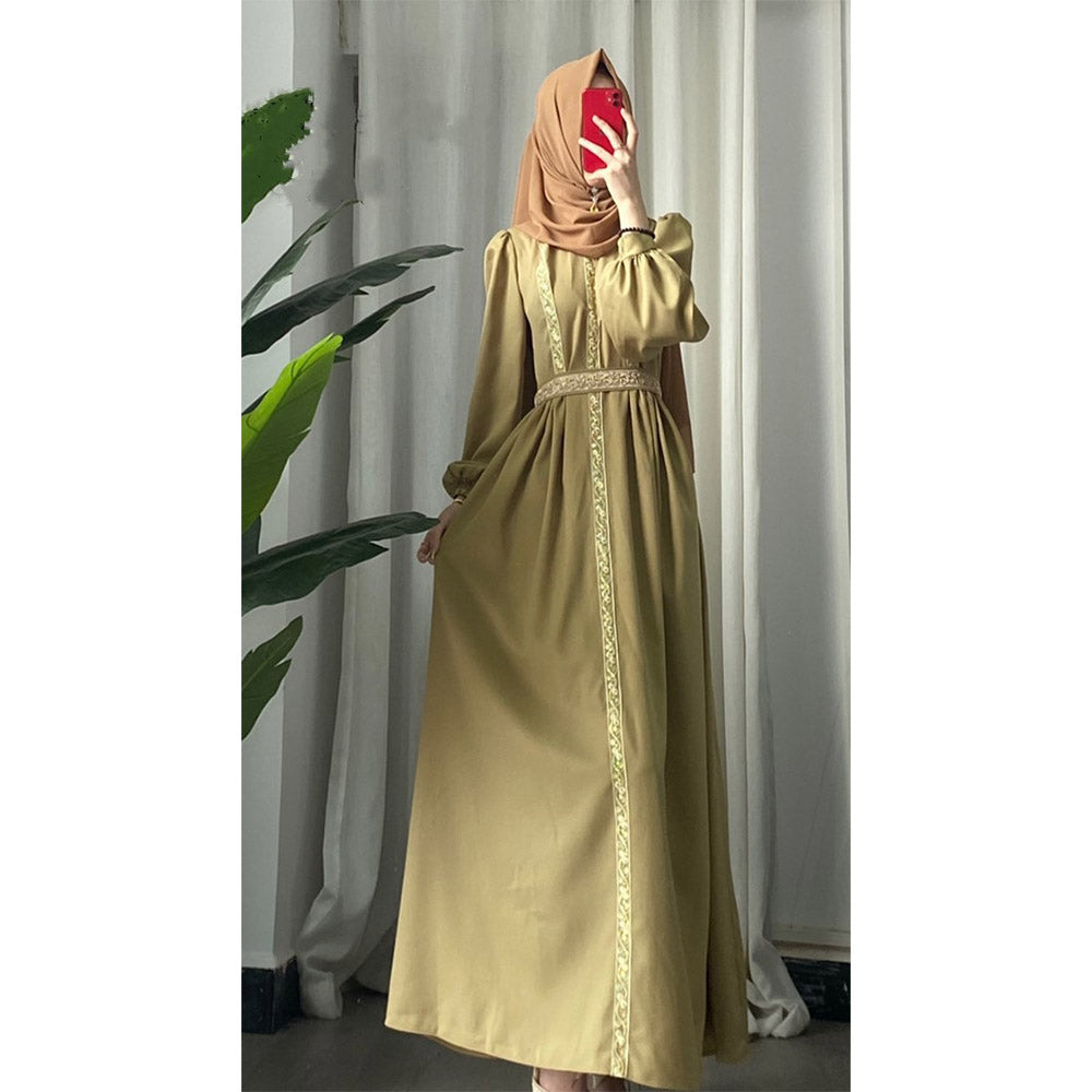 فستان طويل على الموضة الإسلامية للسيدات بلون سادة