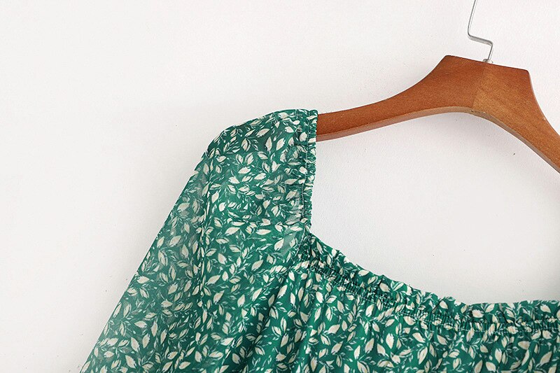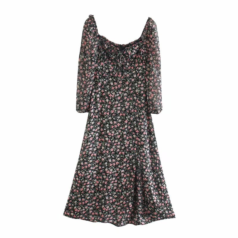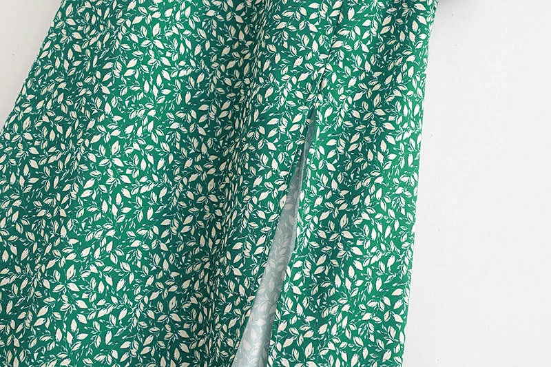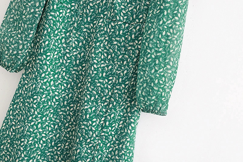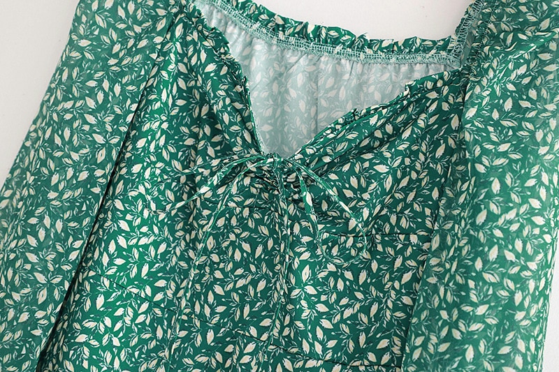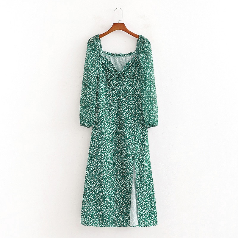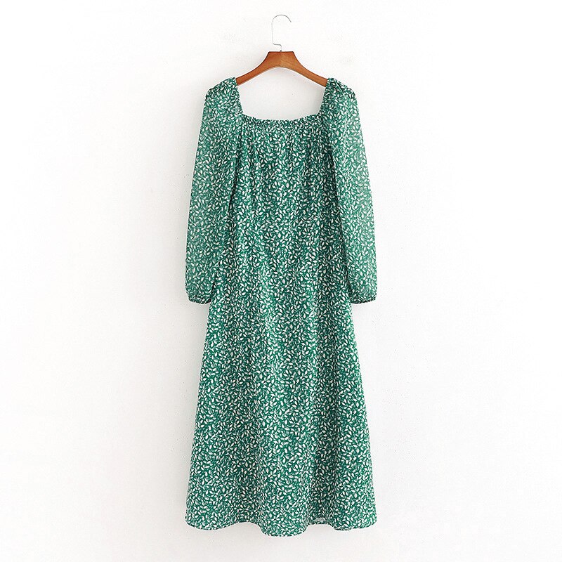 فستان ربيعي عتيق بأكمام طويلة وأزهار خضراء للنساء للخريف والشتاء فستان طويل ماكسي 2021 فستان بوهو مطبوع عليه أوراق الشجر أسود