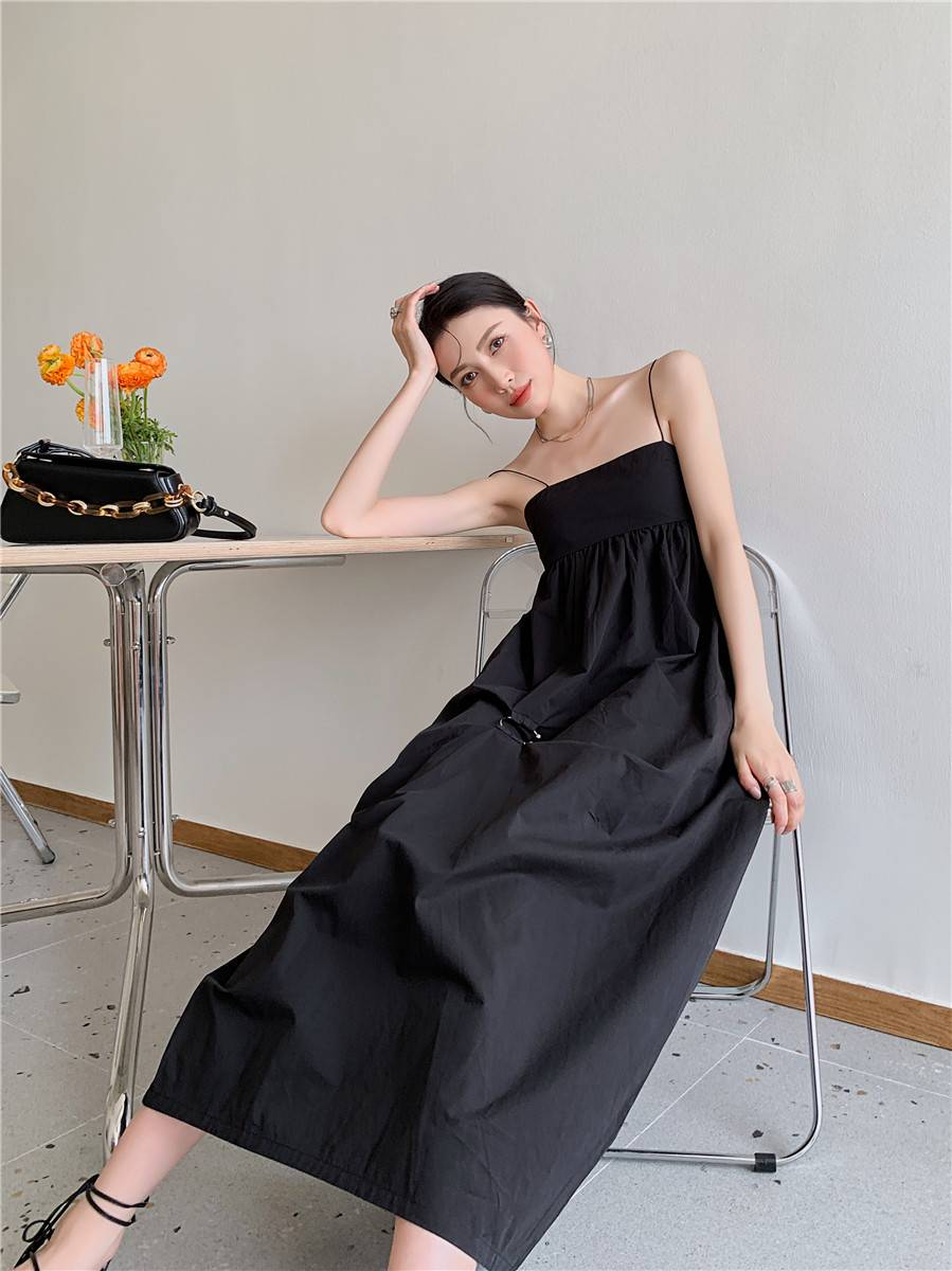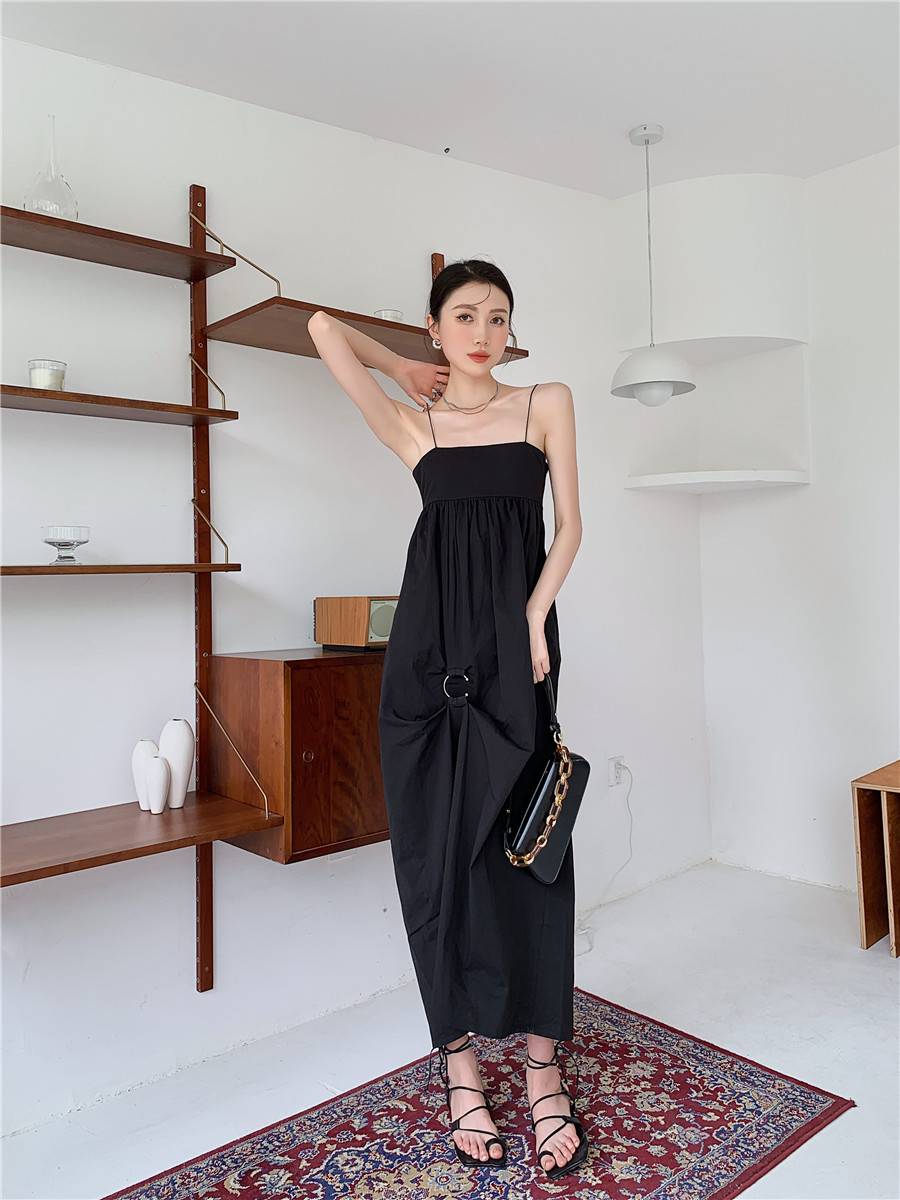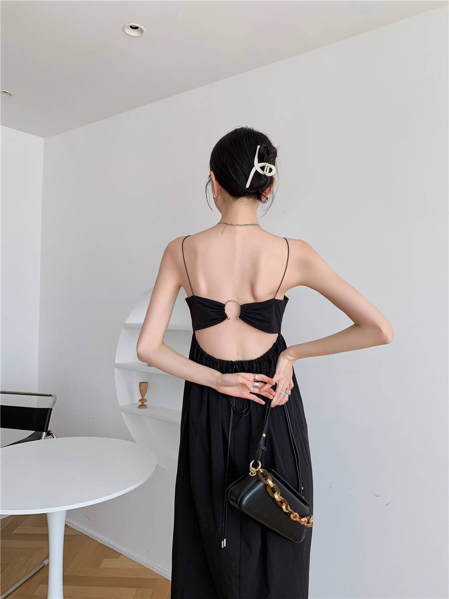 الصيف عارية الذراعين المرأة فستان بحزام الشاطئ بوهو فستان أسود 2338 #