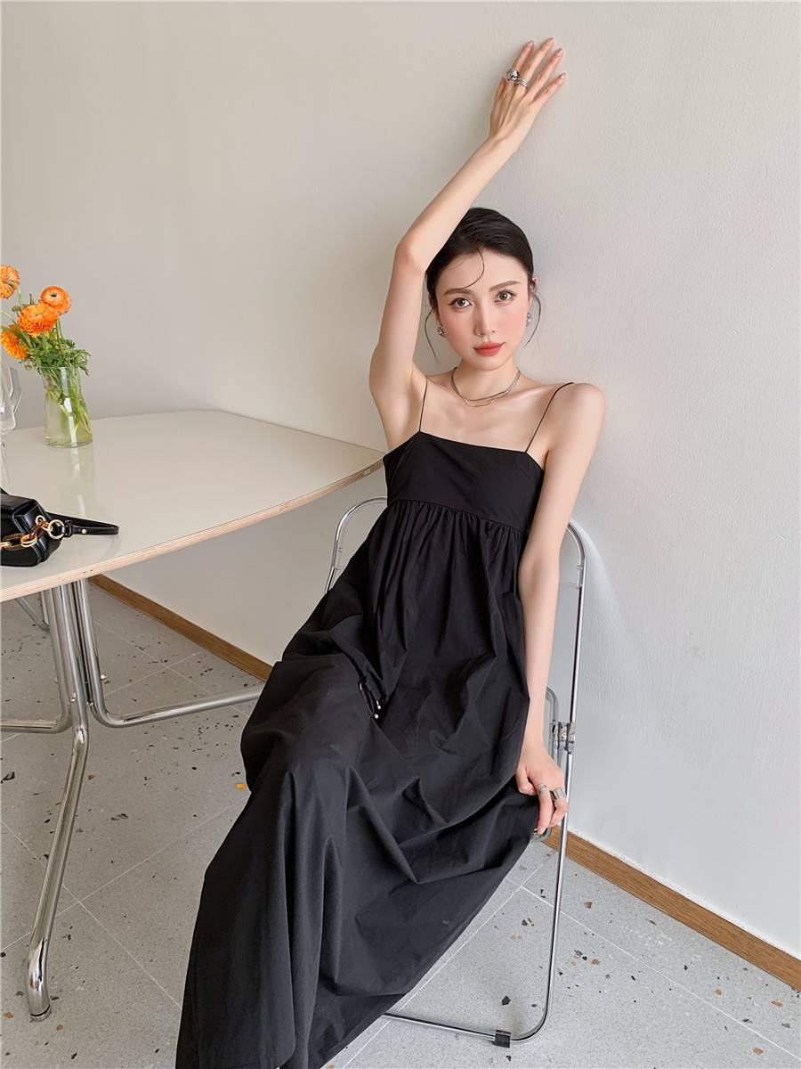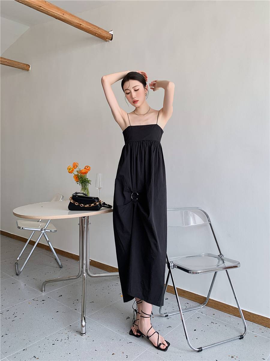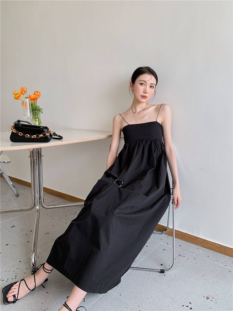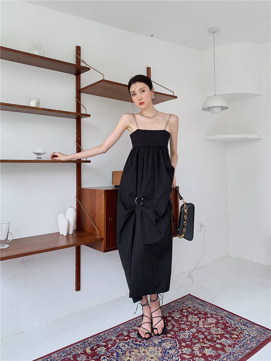 الصيف عارية الذراعين المرأة فستان بحزام الشاطئ بوهو فستان أسود 2338 #