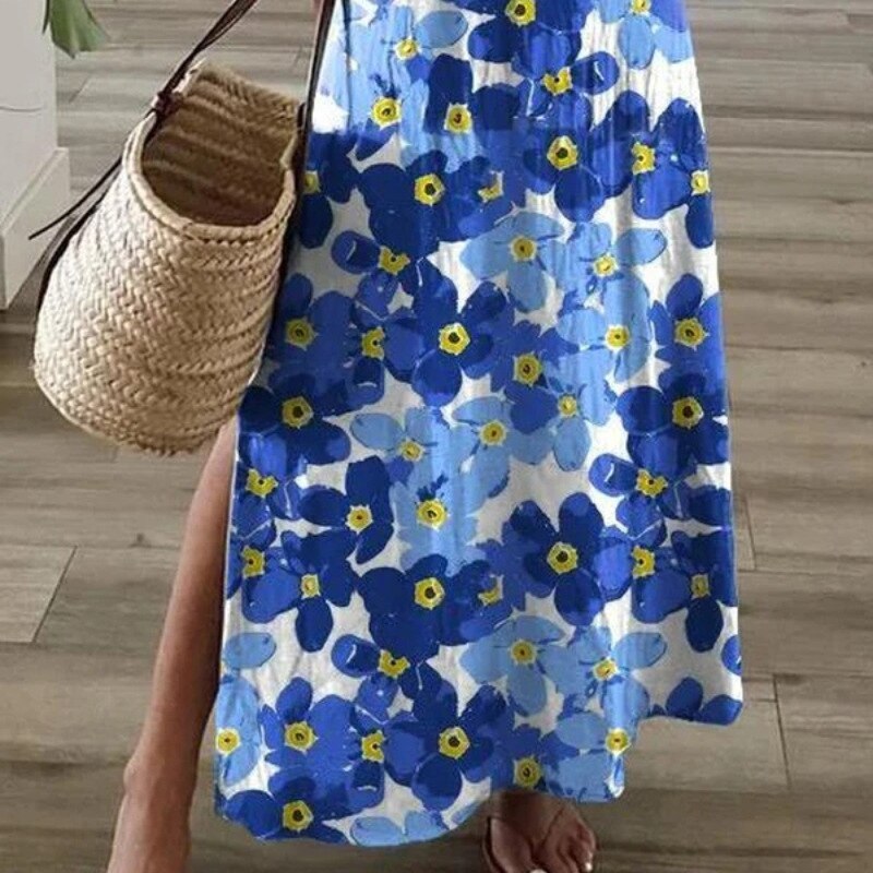 فستان نسائي صيفي بنمط بوهو مطبوع عليه زهور بأكمام قصيرة وياقة على شكل V فستان طويل للسيدات لحفلات الشاطئ فساتين مثيرة بفتحة