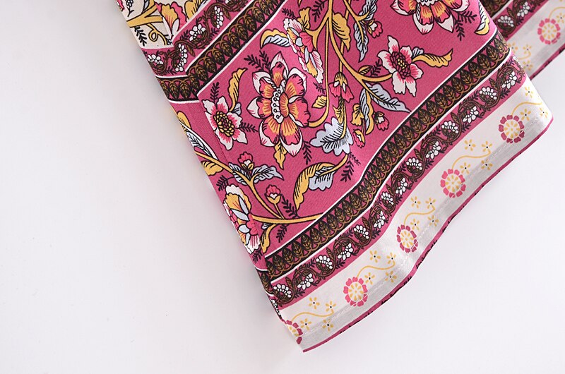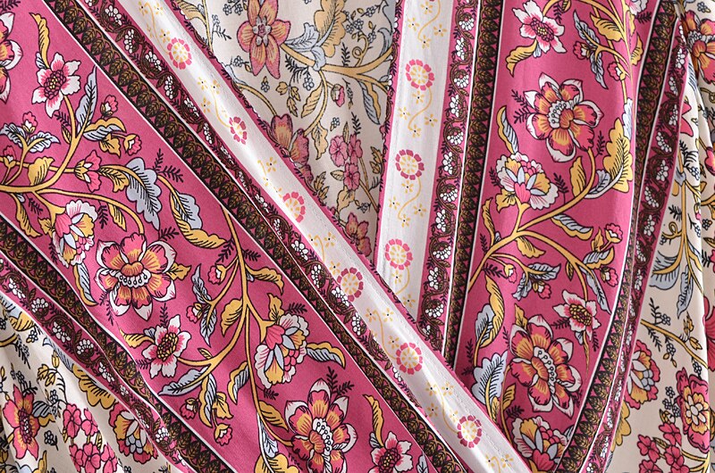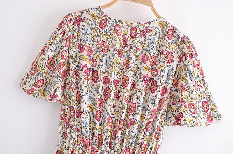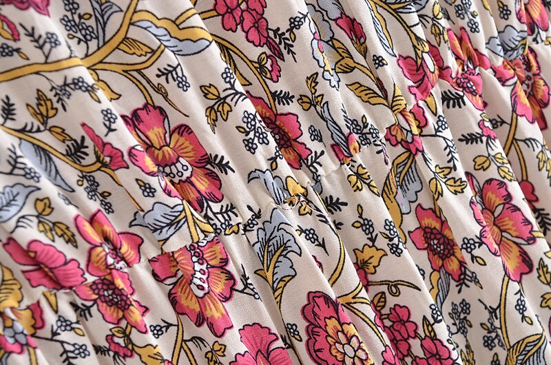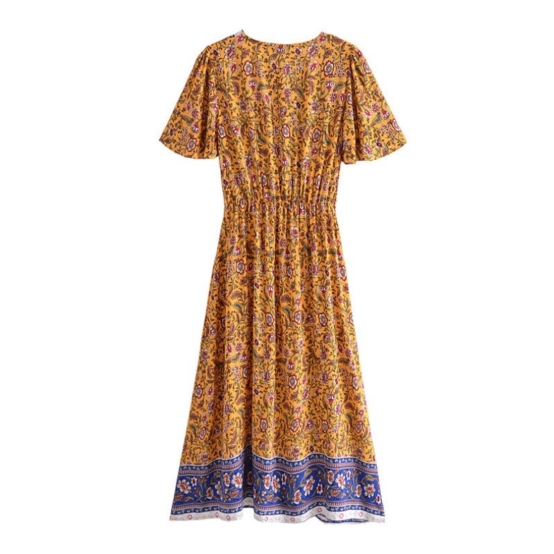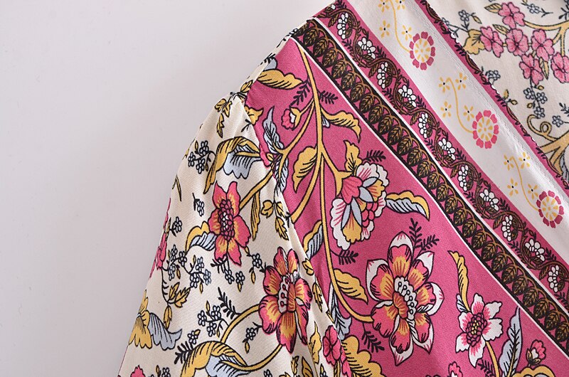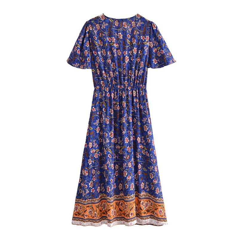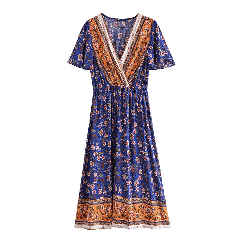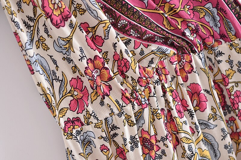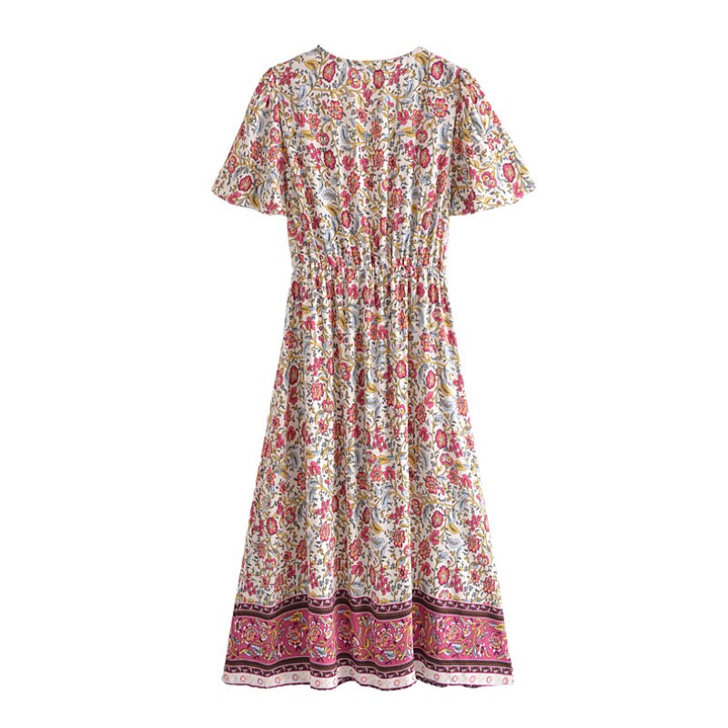فستان صيفي نسائي بوهو مطبوع عليه زهور على شكل حرف A أنيق بياقة على شكل V وأكمام قصيرة على شكل فراشة فستان شاطئ كاجوال للسيدات