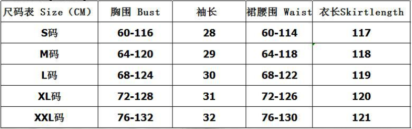 | حجم المنتج | التمثال/الصدر (سم) | طول التنورة (سم) |