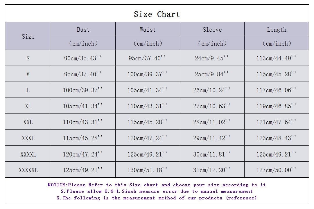 | 5XL | 125 سم | 127 سم | 130 سم |