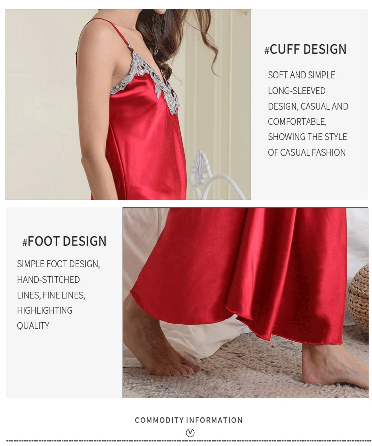 قميص نوم نسائي من الدانتيل الساتان، قمصان نوم مثيرة، قميص نوم طويل