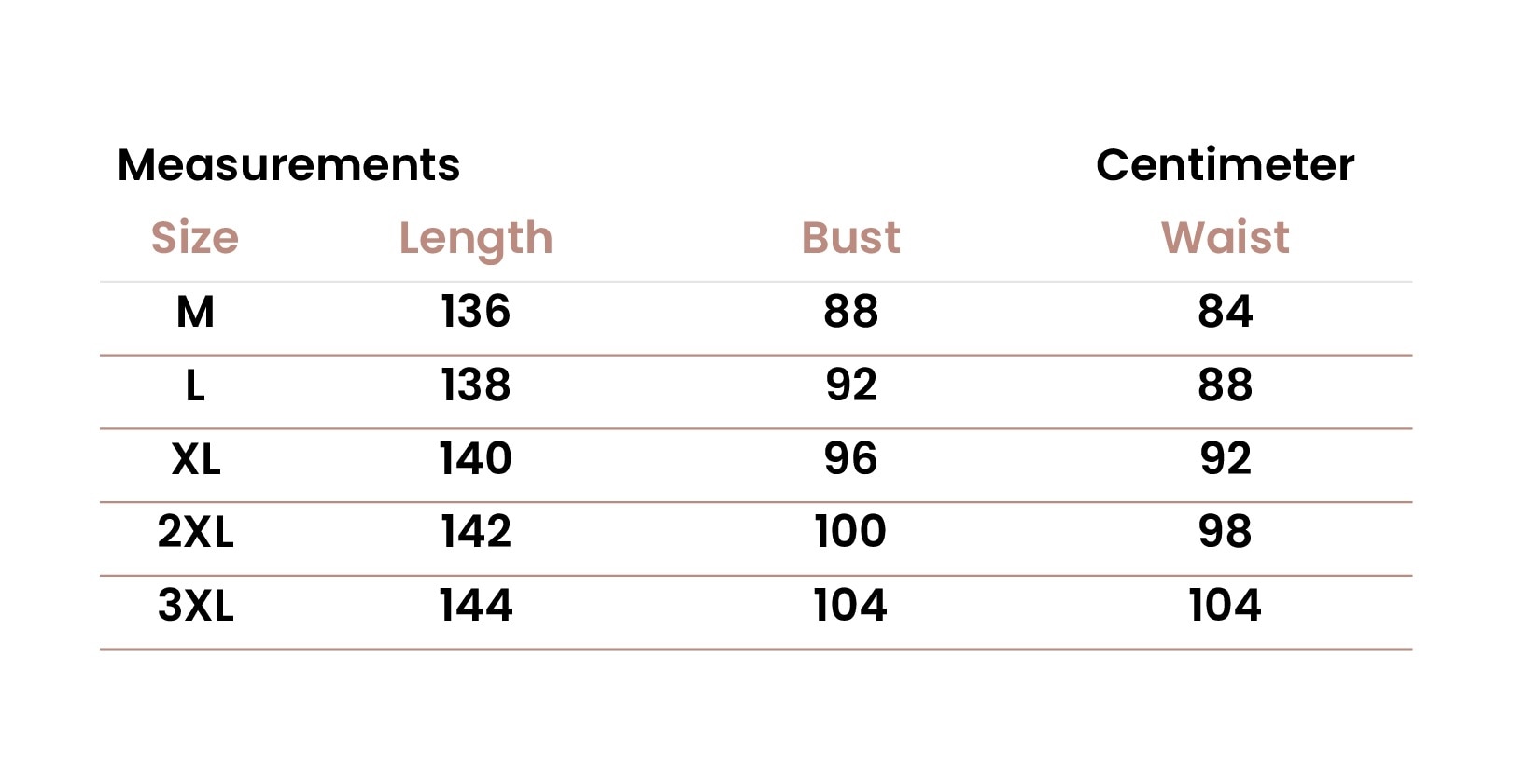 | حجم المنتج | التمثال/الصدر (سم) | طول التنورة (سم) |