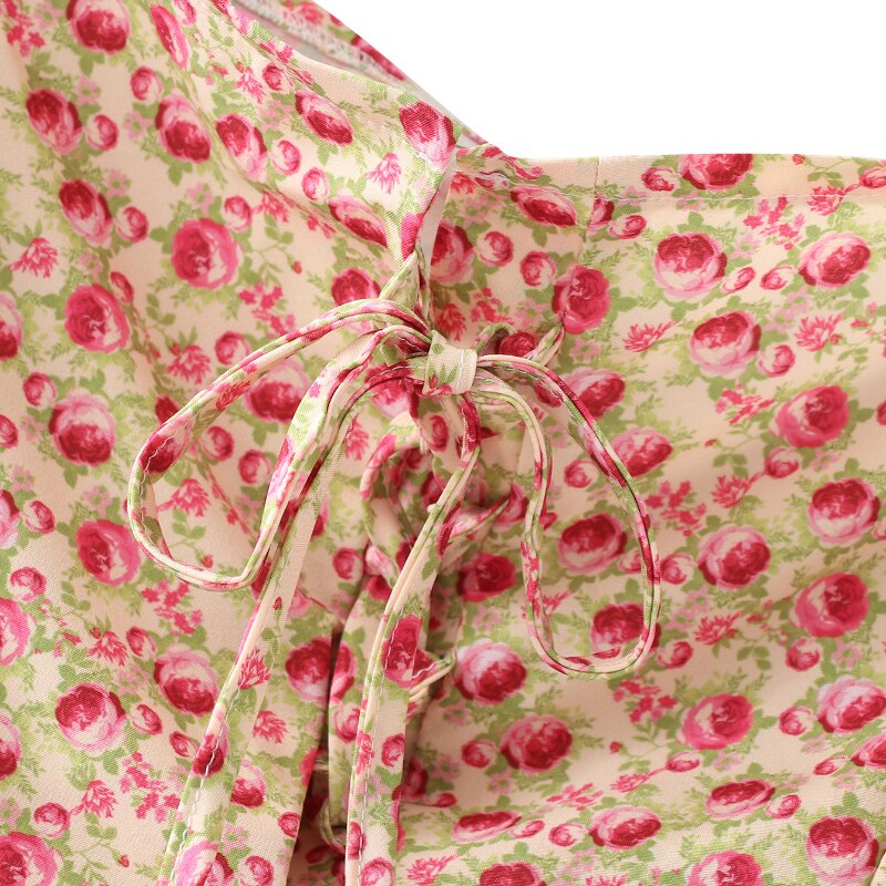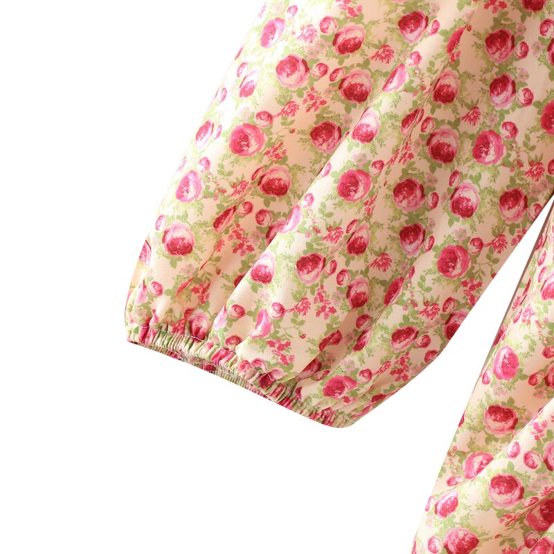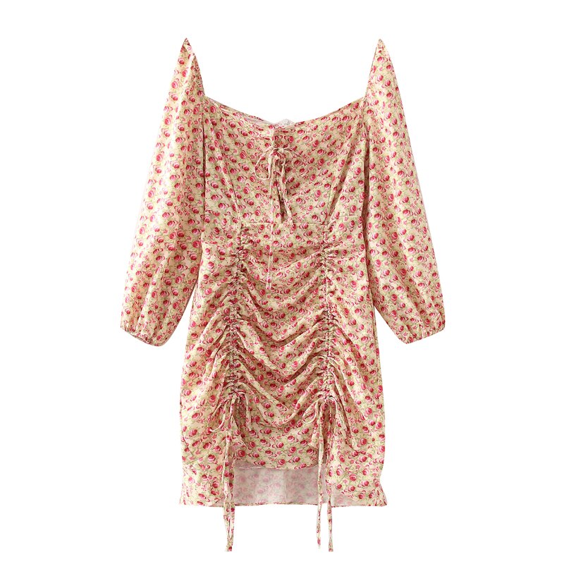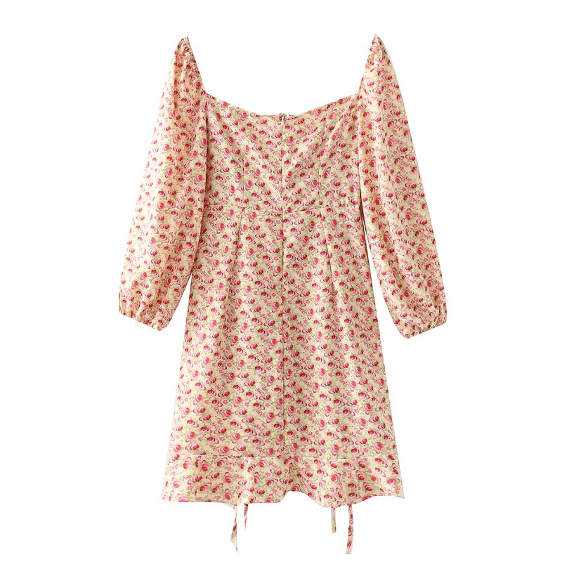 فساتين نسائية بوهو ستايل قصيرة مطبوعة بالورود وأكمام طويلة وياقة مربعة فساتين نسائية أنيقة على شكل حرف A فستان ضيق