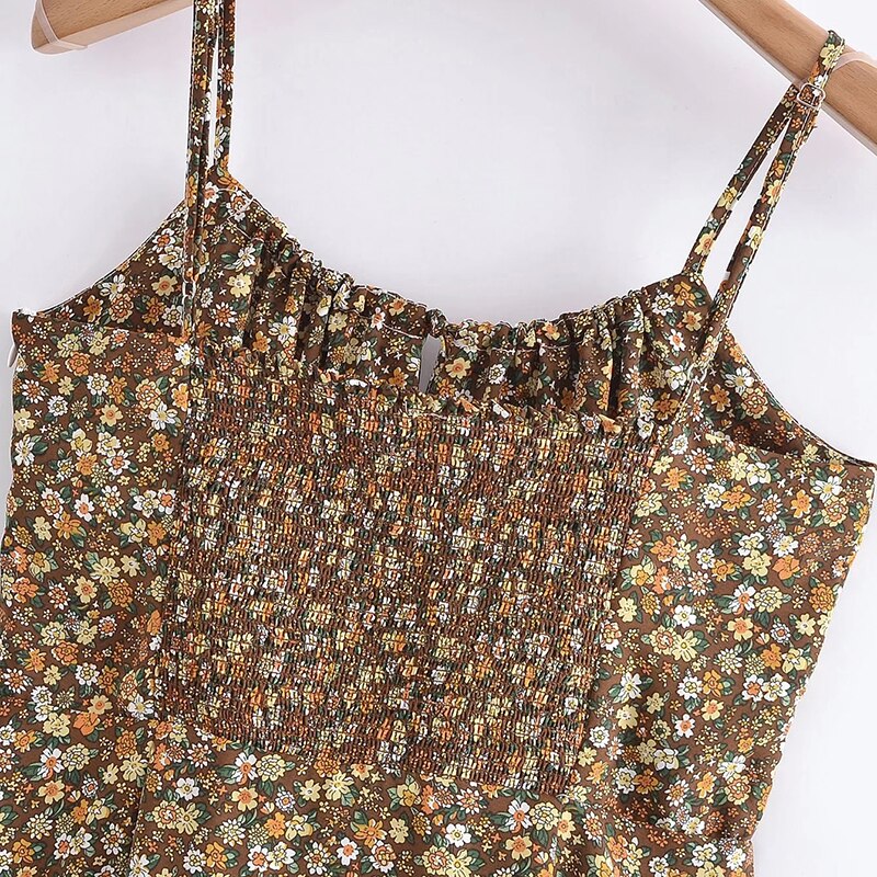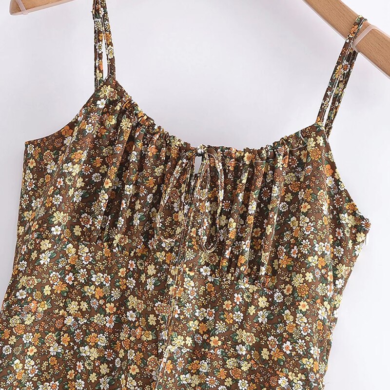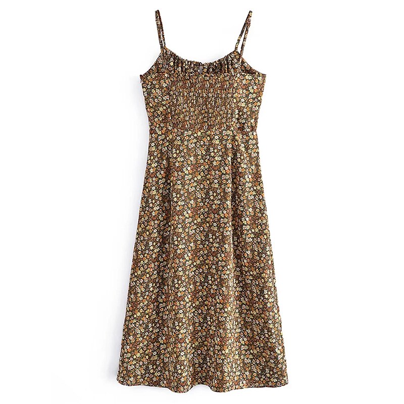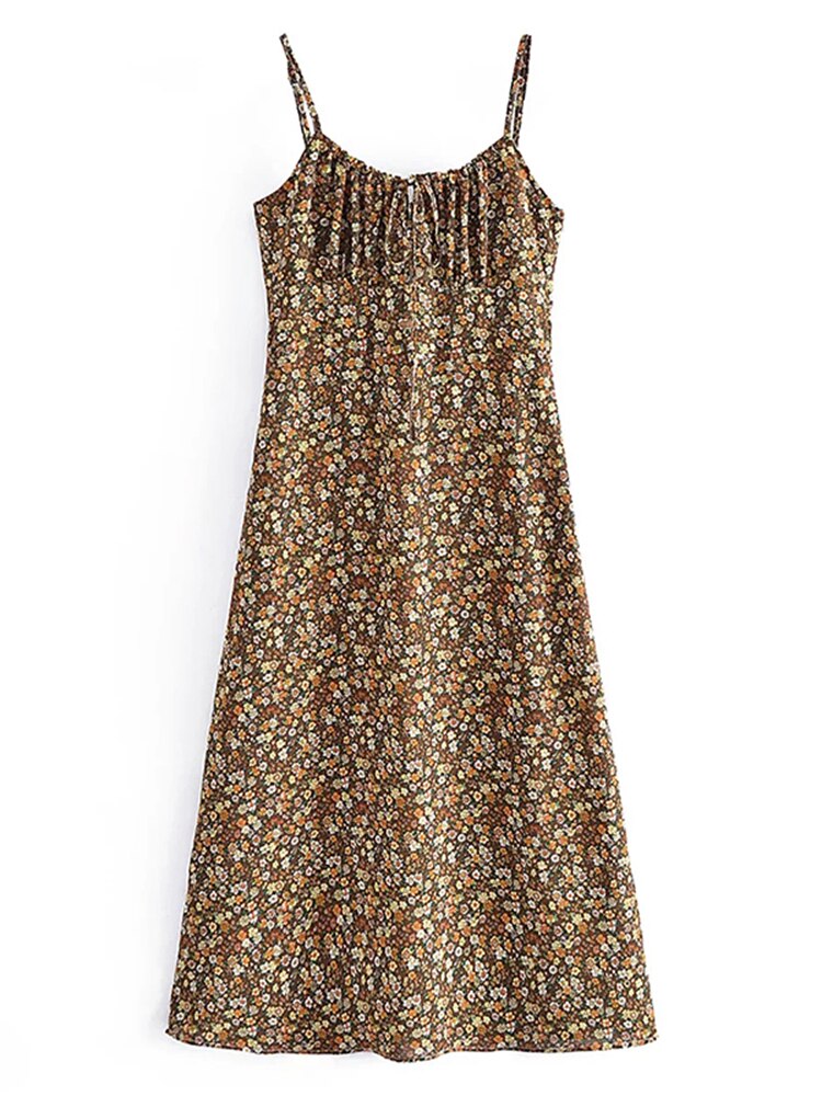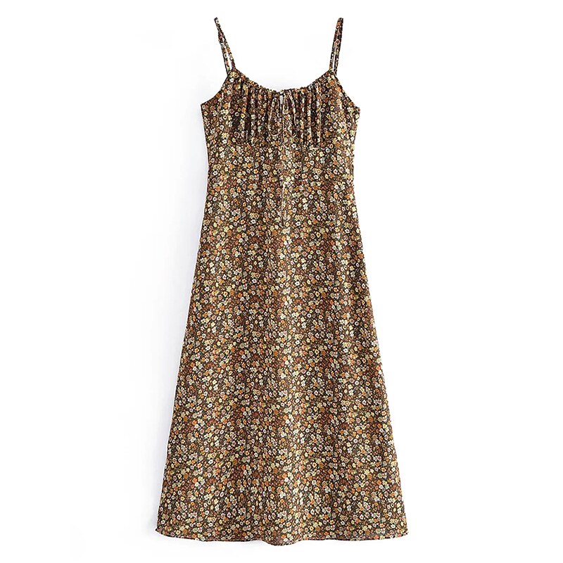 المرأة بوهو نمط الأزهار المطبوعة ميدي فستان عادية السباغيتي حزام ألف خط فستان السيدات موضة فستان بحزام السباغيتي