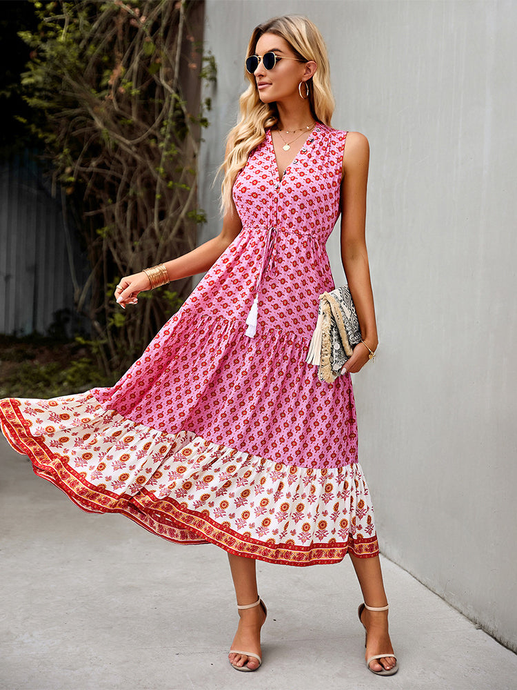 فستان صيفي نسائي فساتين ماكسي بطبعة زهور فستان طويل للشاطئ بوهيمي هيبي ملابس نسائية 2022