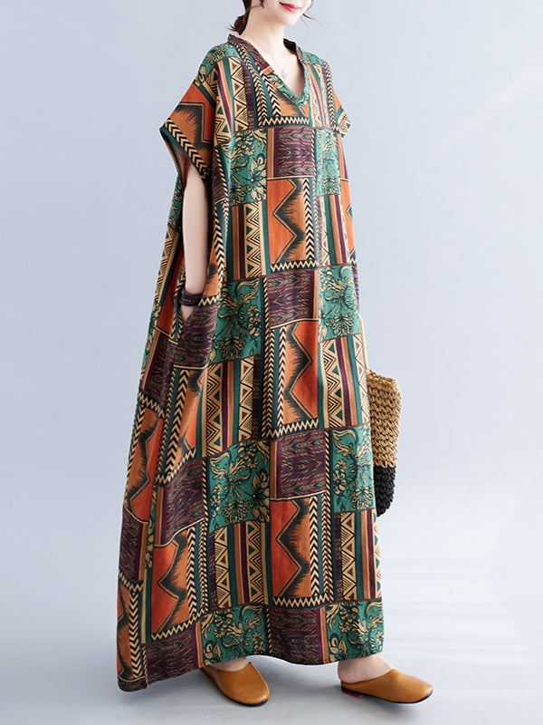 المرأة حجم كبير المرأة الصيف الجديدة القطن والكتان الرجعية الخامس الرقبة القطن والكتان رداء طويل مريح لتغطية اللحوم فستان تنورة طويلة
