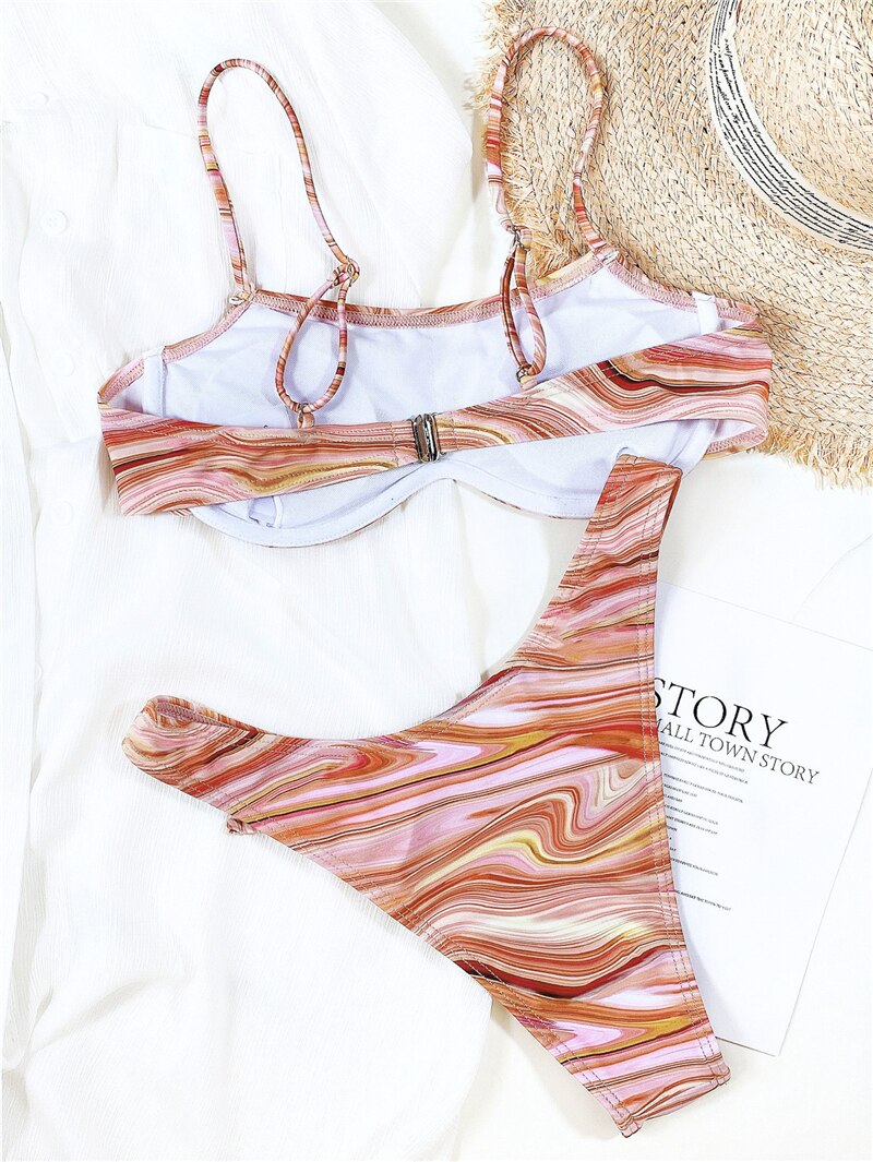 Bikinis Swimsuit Women Sexy Underwire Bra Ripple Quicksand Swimwear Push up  Set Summer Female Swimming Bathing Suit