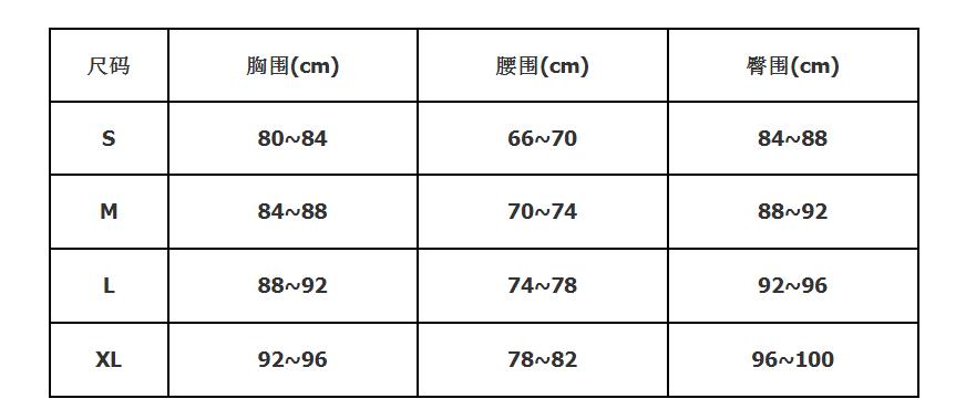 | Product Size | Bust/Chest(cm) | Waist(cm) |