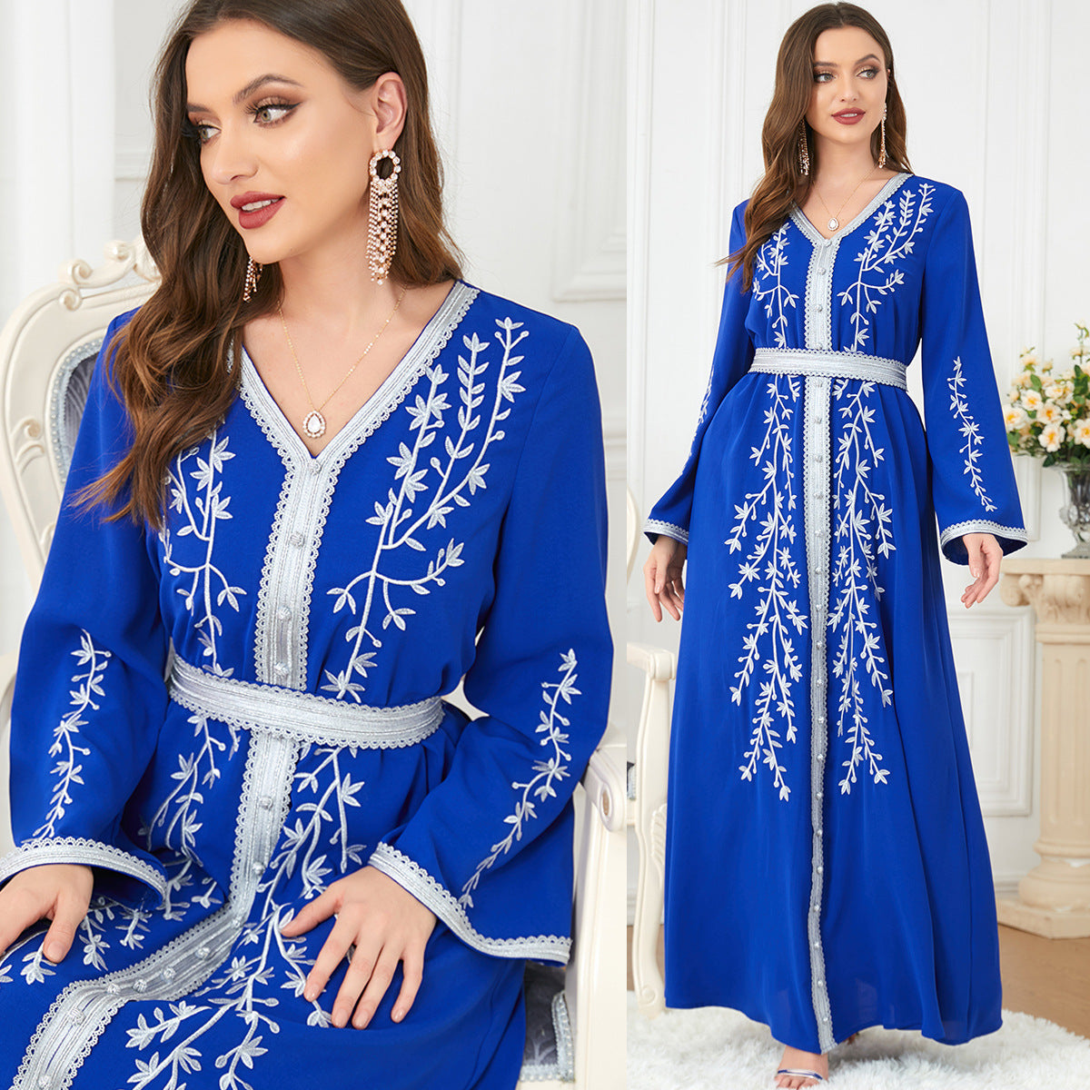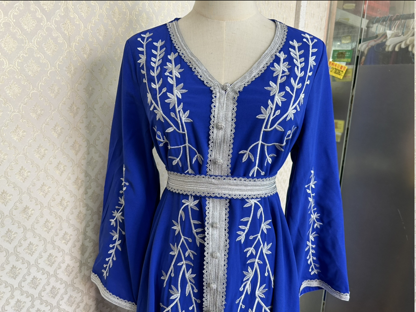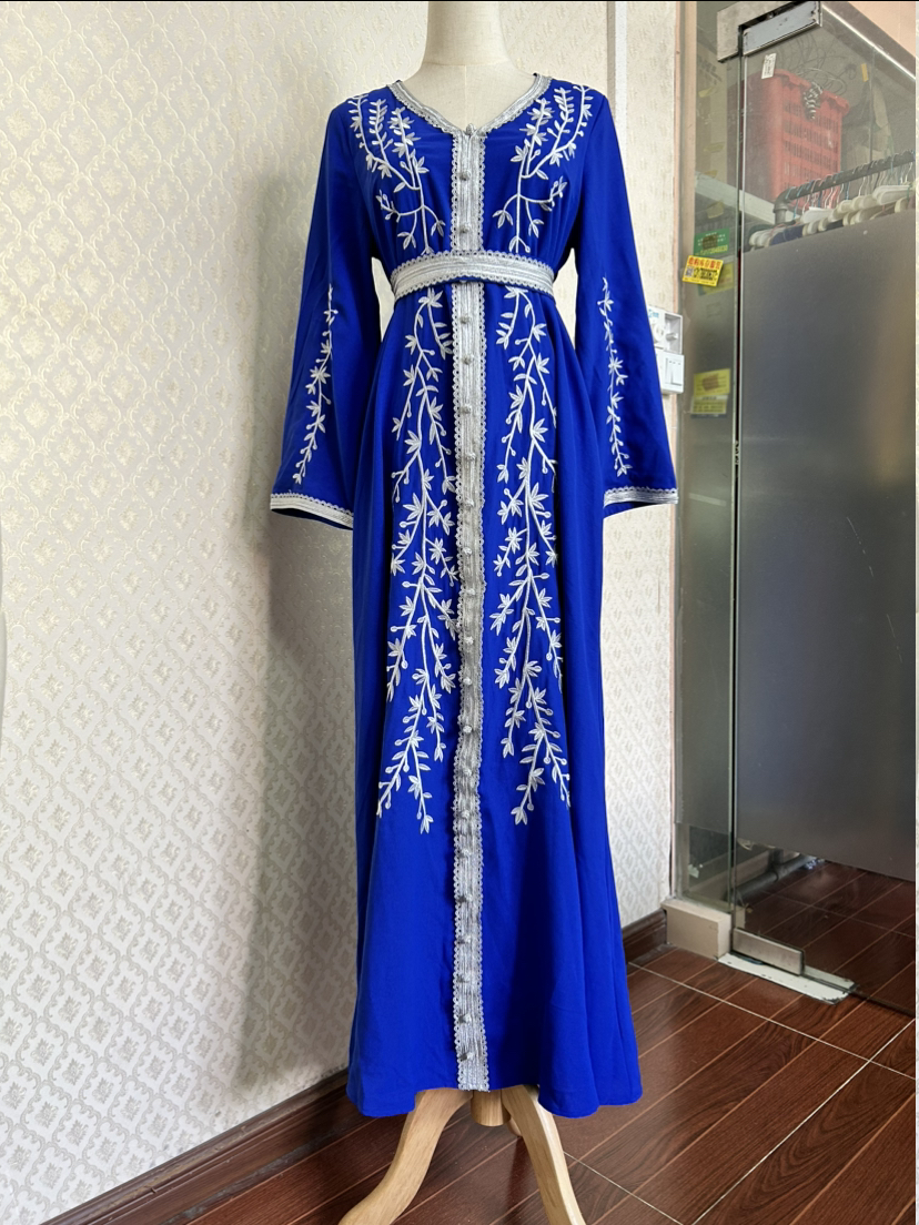 2023 New Slim New Women's Foreign Trade Wholesale Loose Embroidery Skirt Long Sleeve Dress