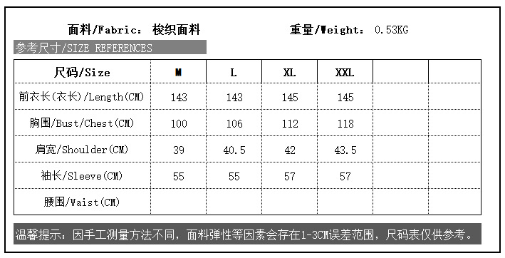 | Product Size | Bust/Chest(cm) | Skirt length(cm) |
