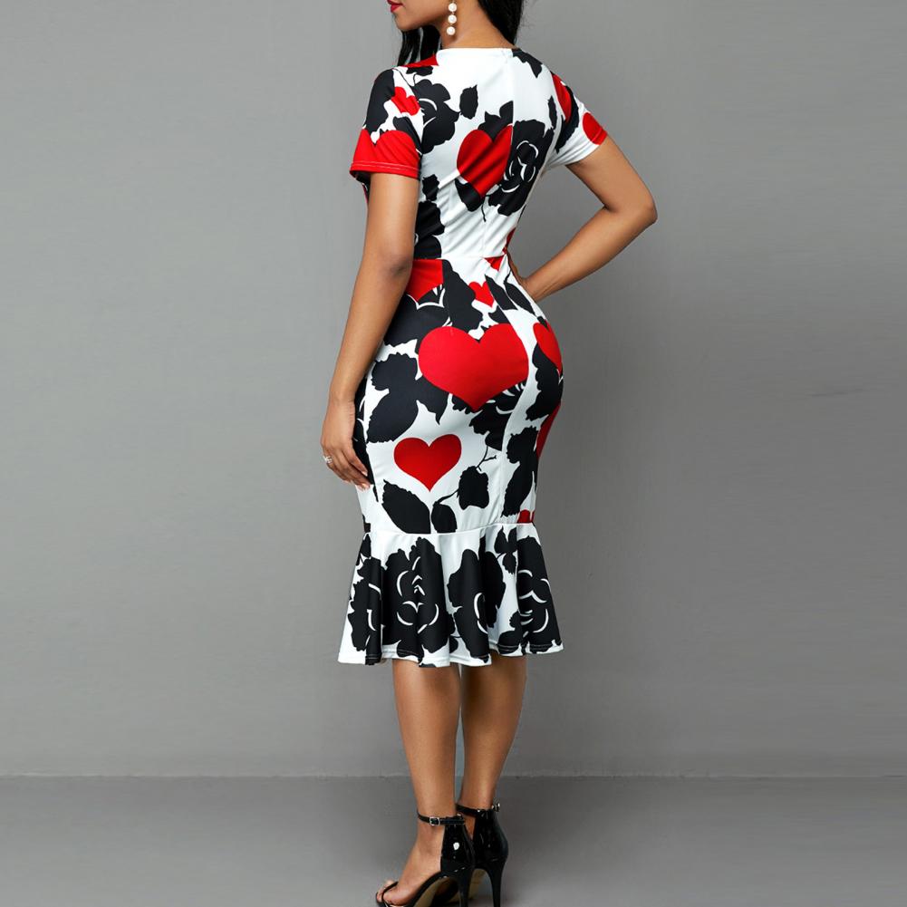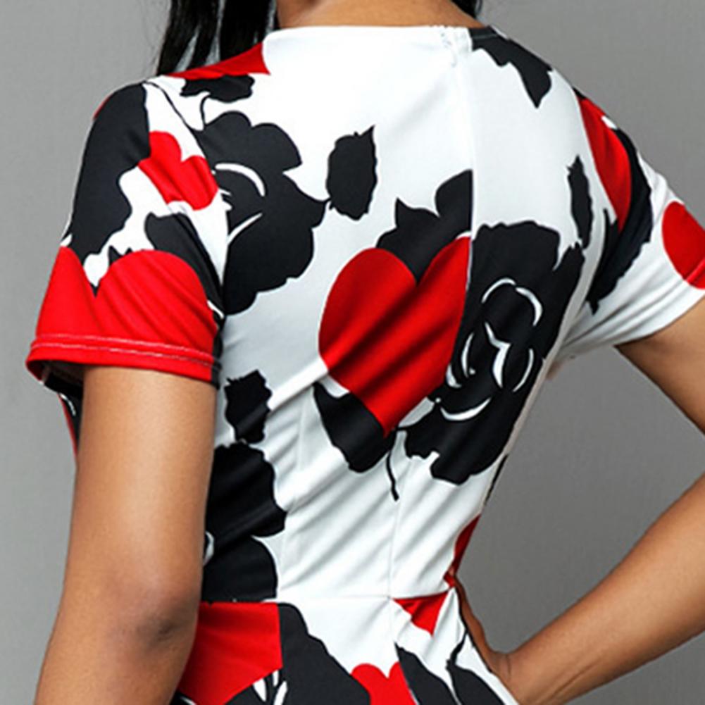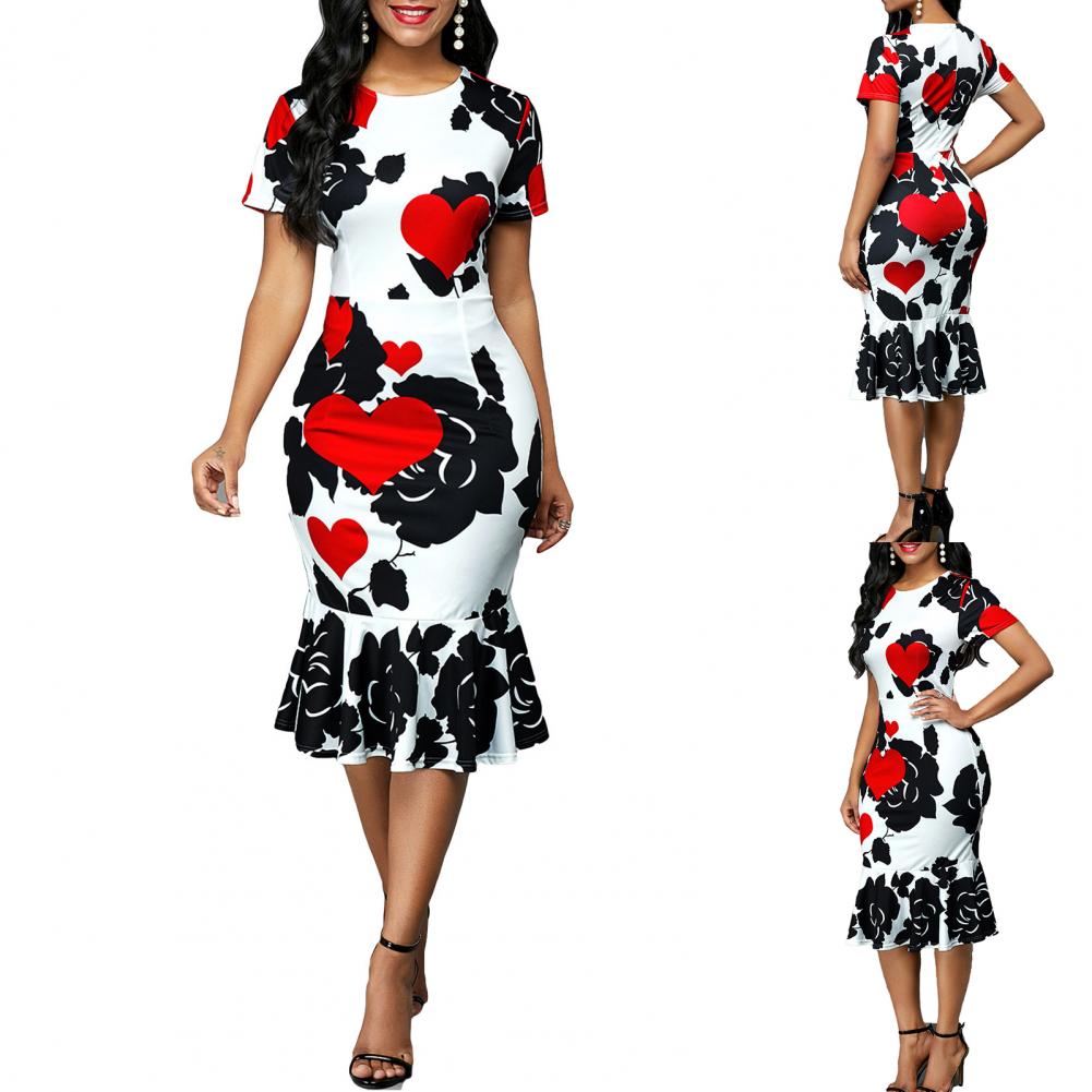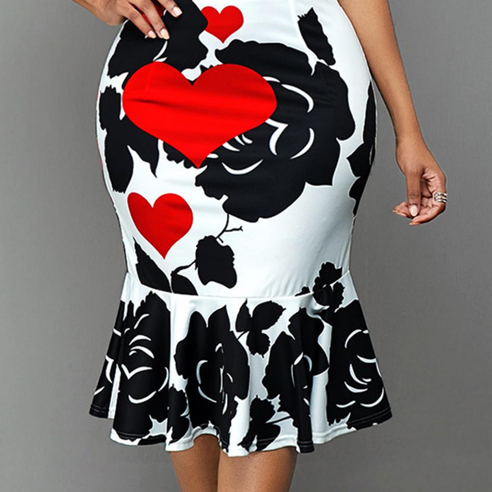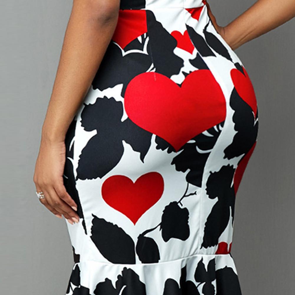 Red heart and black flower print makes this formal dress very unique and fashionable. And ruffles design makes you more elegant and temperament.