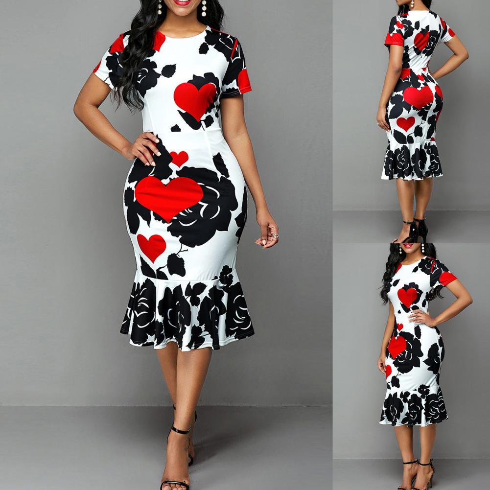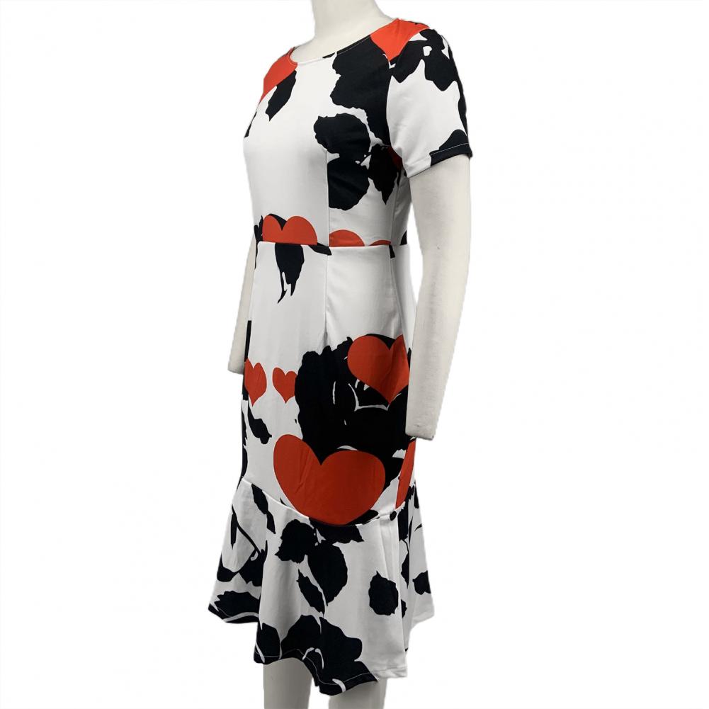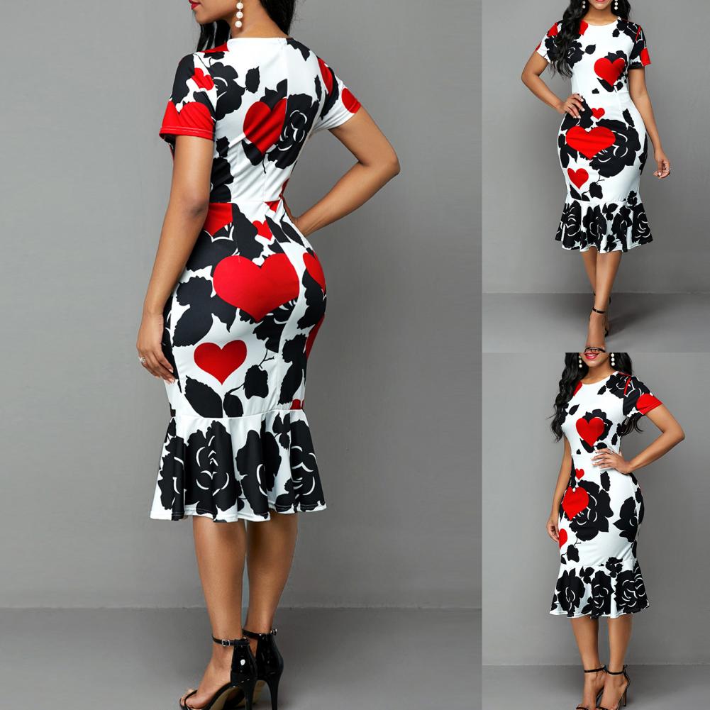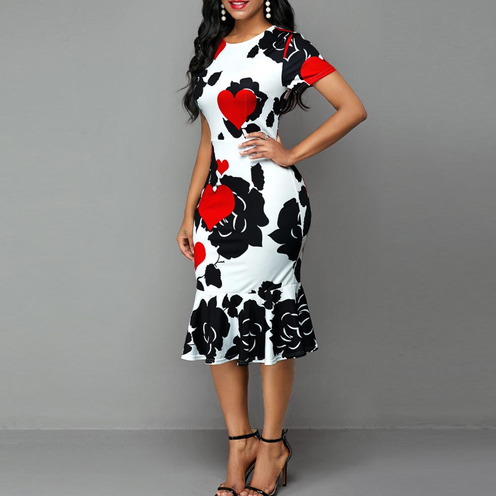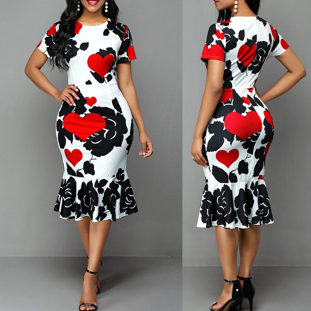 Red heart and black flower print makes this formal dress very unique and fashionable. And ruffles design makes you more elegant and temperament.