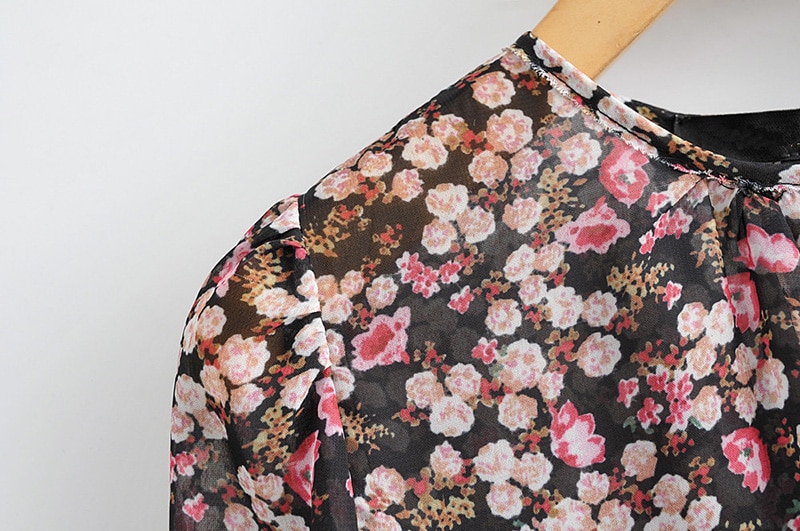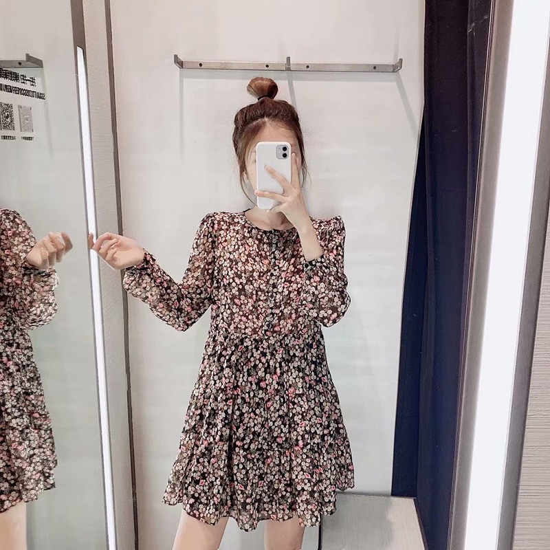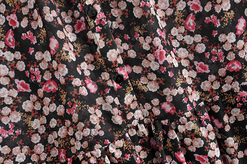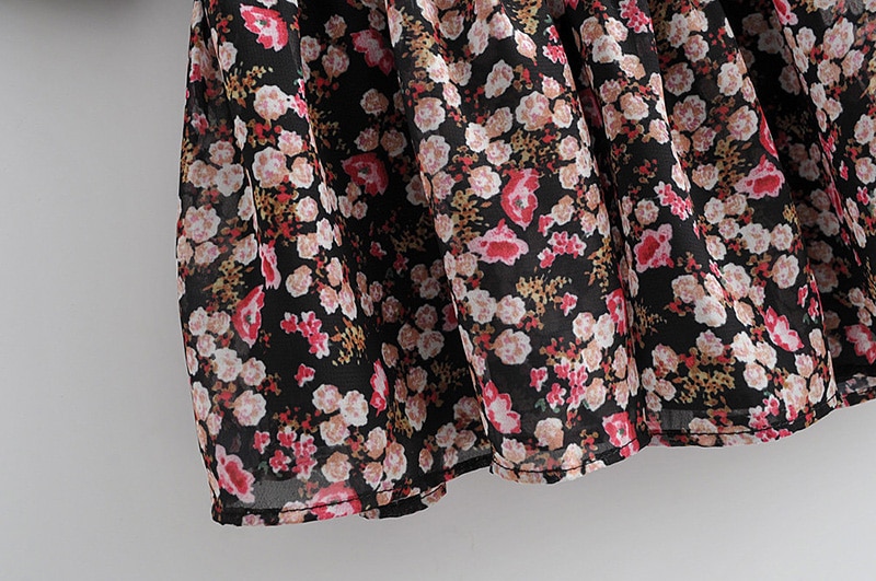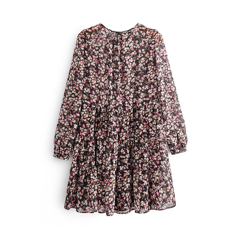 Aachoae Boho Style Floral Print Pleated Dress Long Sleeve Women Mini Dress O Neck Loose Ladies Dresses Beach Sundress Ropa Mujer