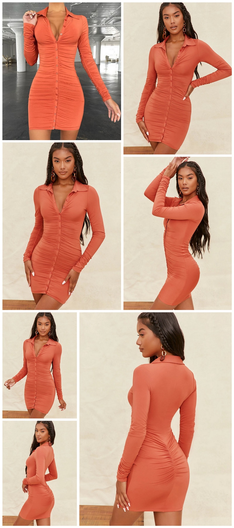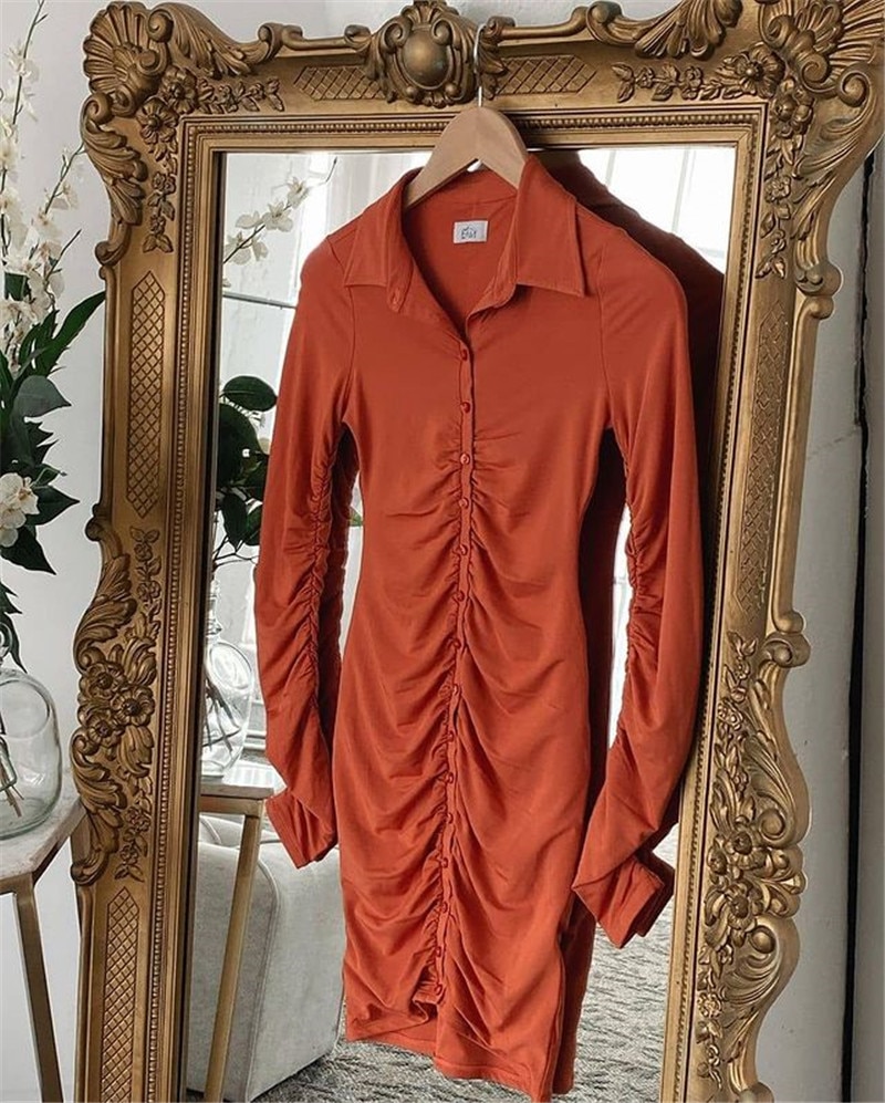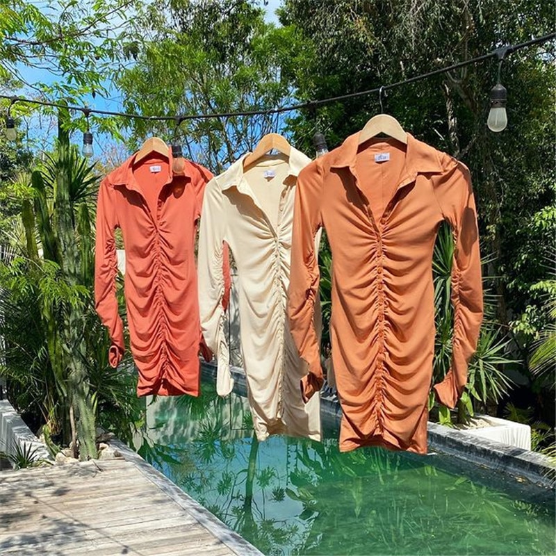 Articat new fall casual women's dress retro bodycon unique breasted summer dress simple pleated y2k women's 2022
