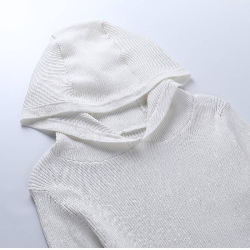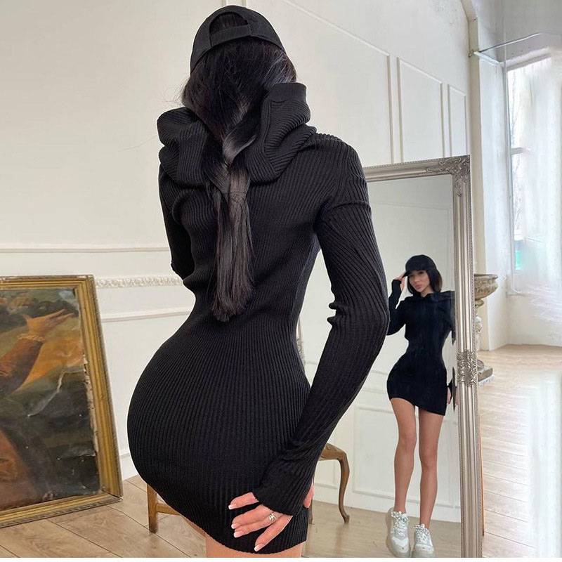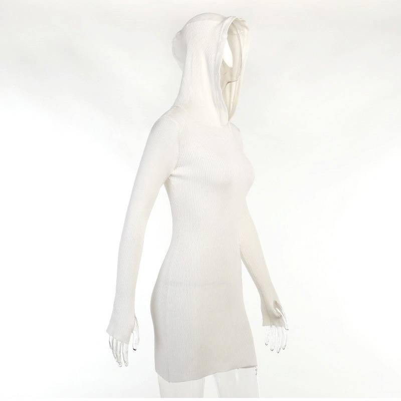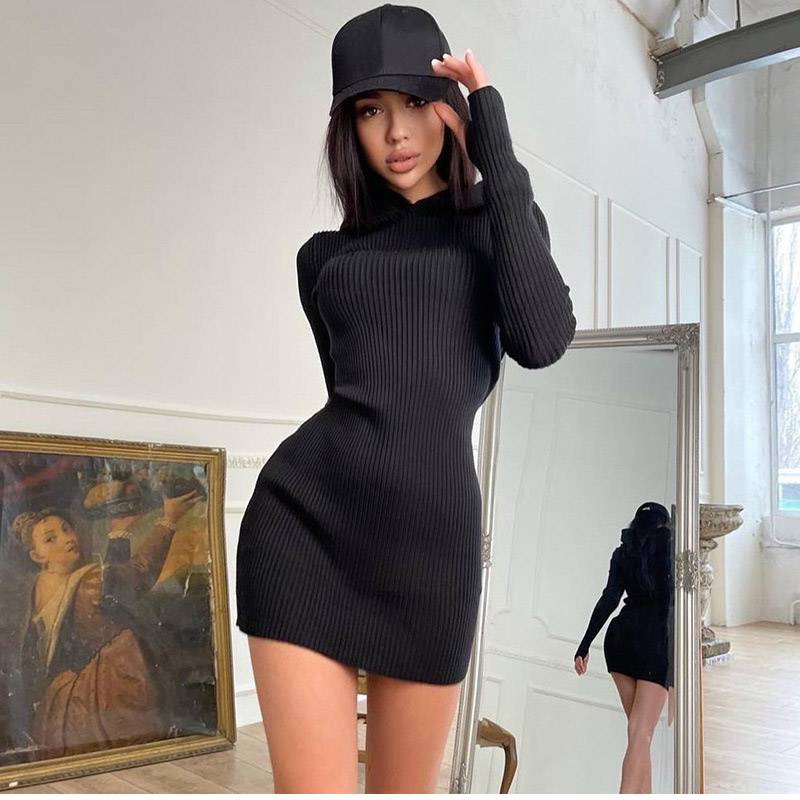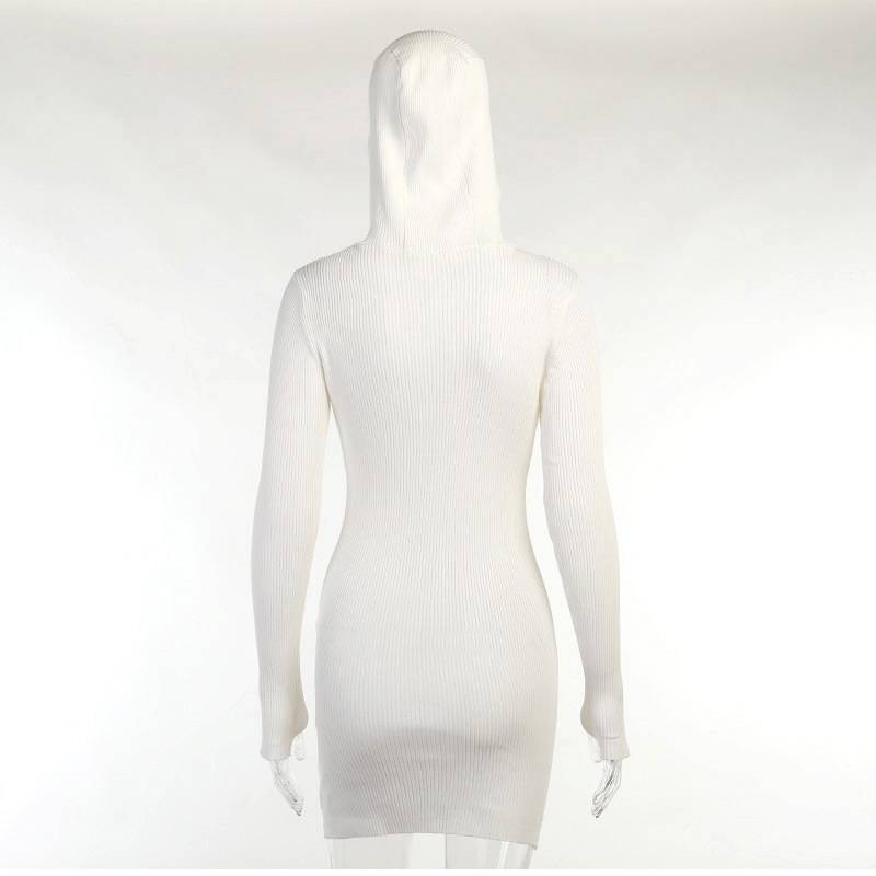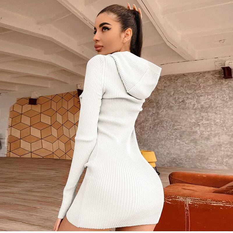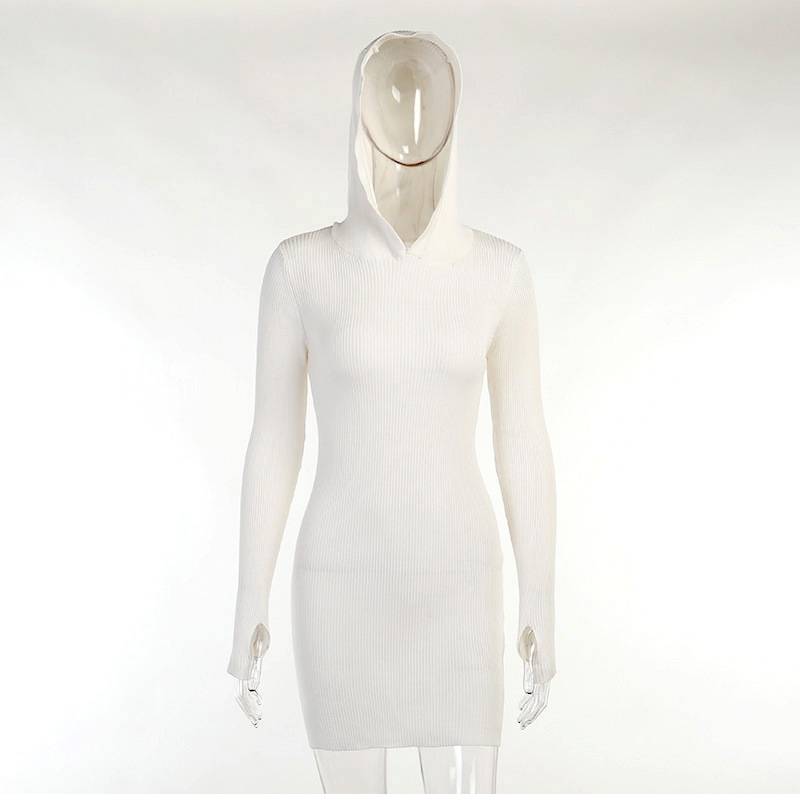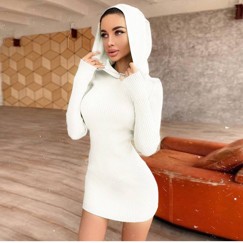 Autumn Winter Knitted Sweater Dress For Women 2021 White Black Long Sleeve Bodycon Mini Dress Casual Hooded Sweatshirt Dresses