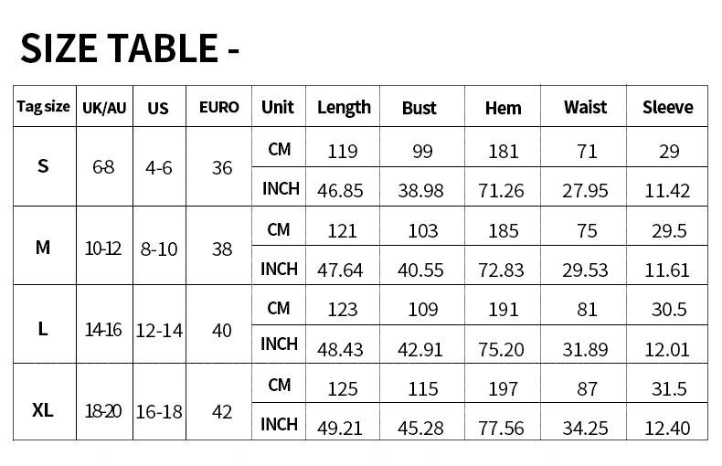 | Product Size | Shoulder(cm) | Bust/Chest(cm) | Sleeve(cm) | Skirt length(cm) | Waist(cm) |