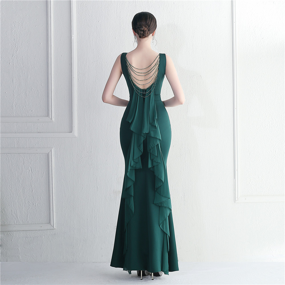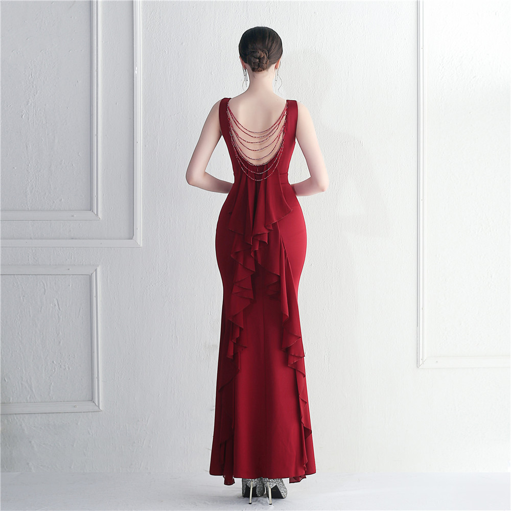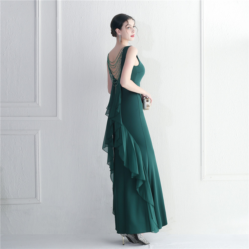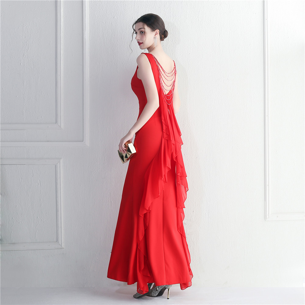 Best-selling models Multi-color heavy craft beaded satin and chiffon wedding dinner etiquette sexy dress long