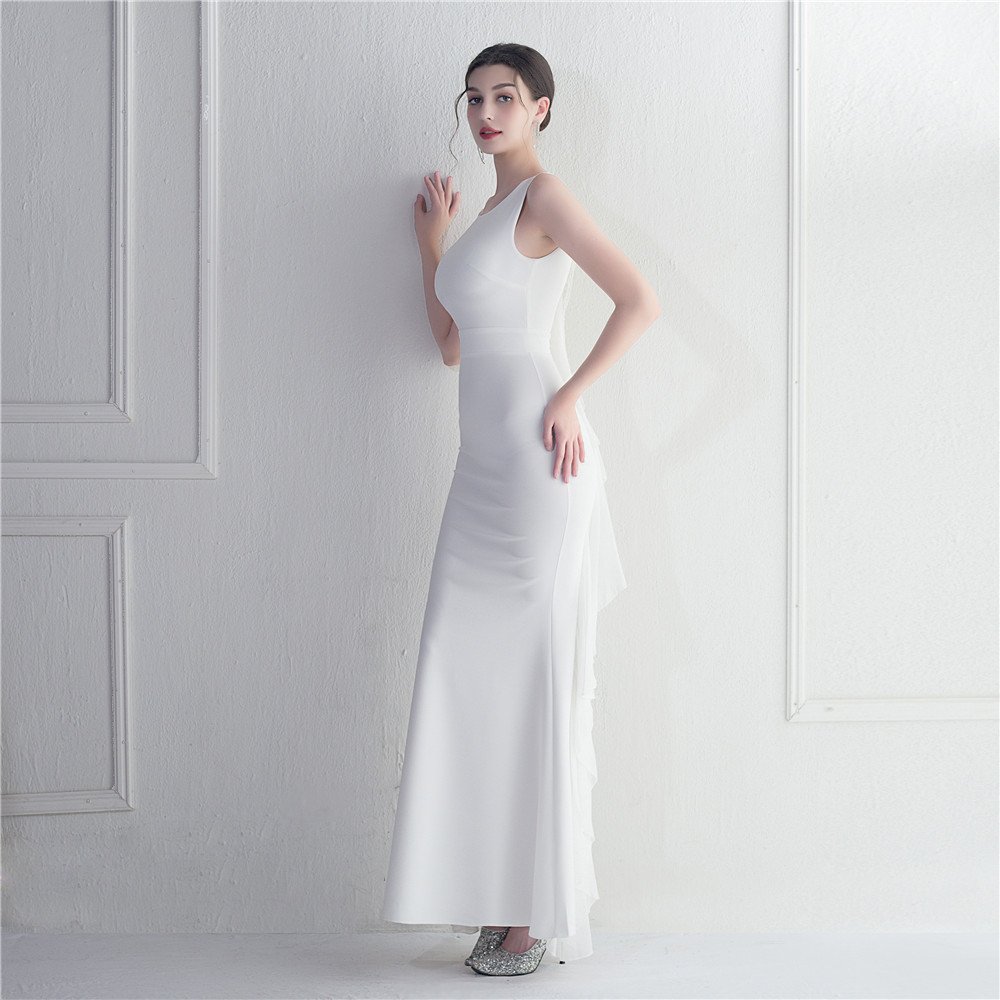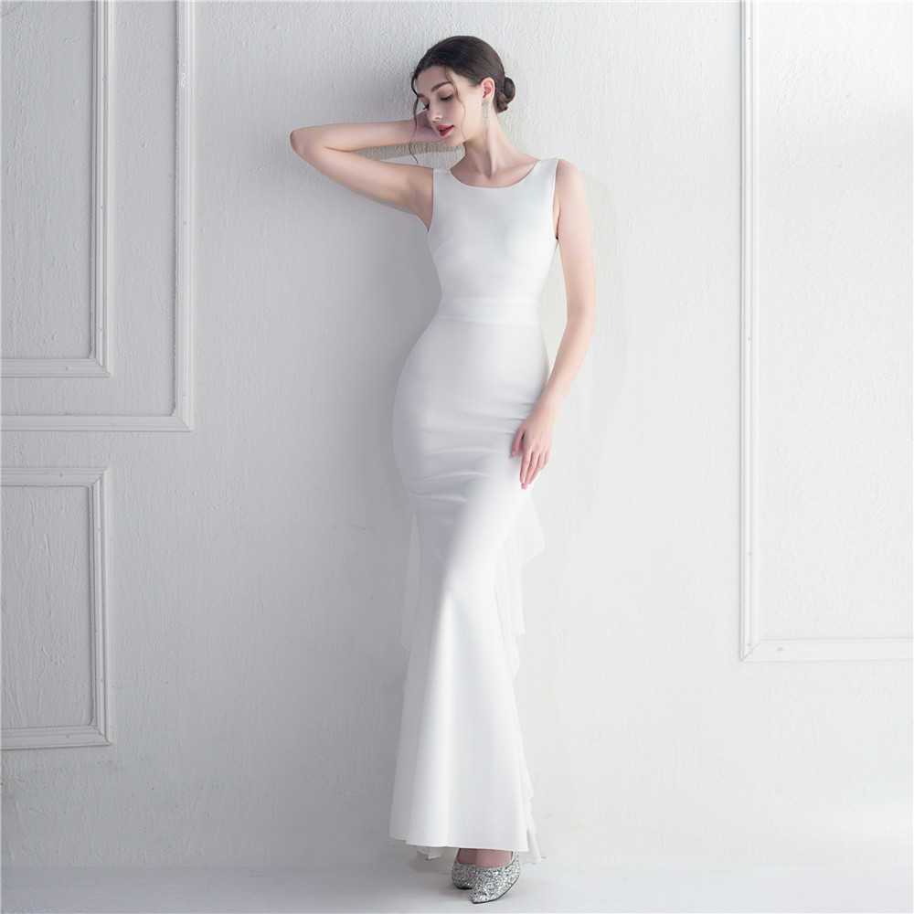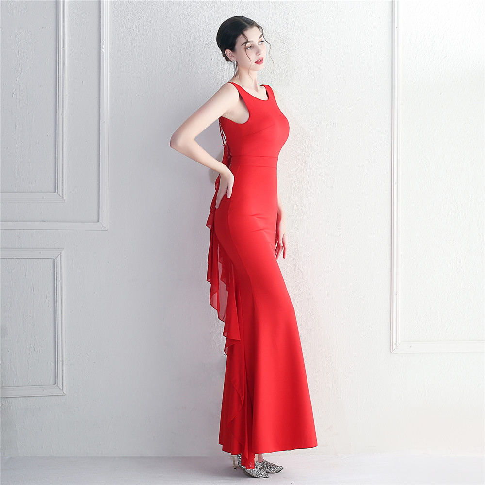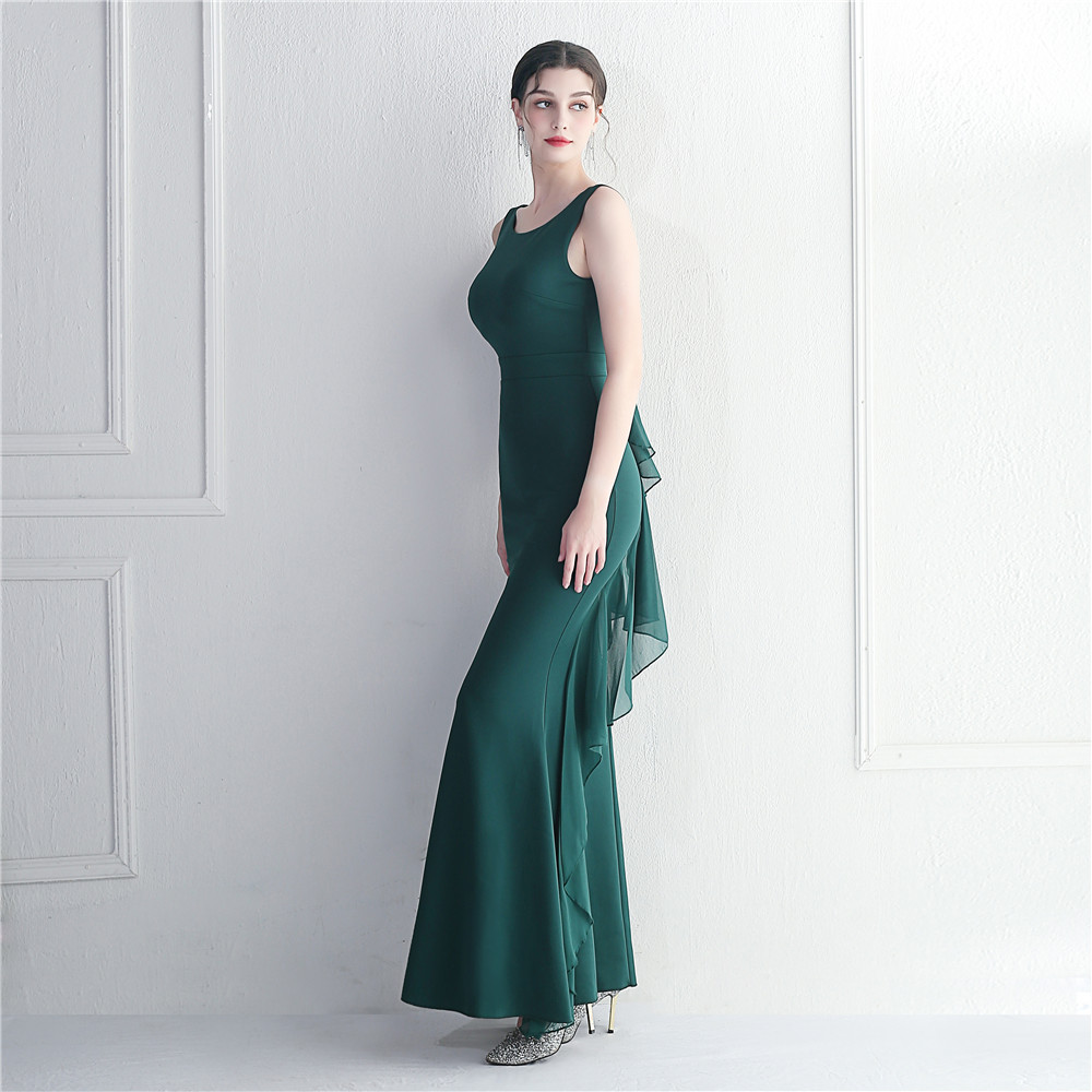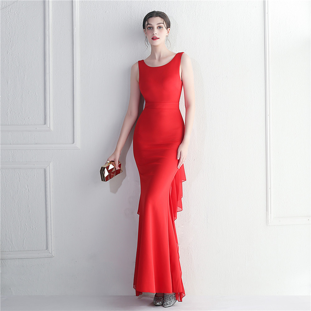 Best-selling models Multi-color heavy craft beaded satin and chiffon wedding dinner etiquette sexy dress long
