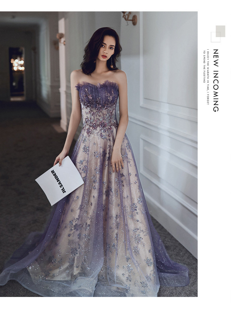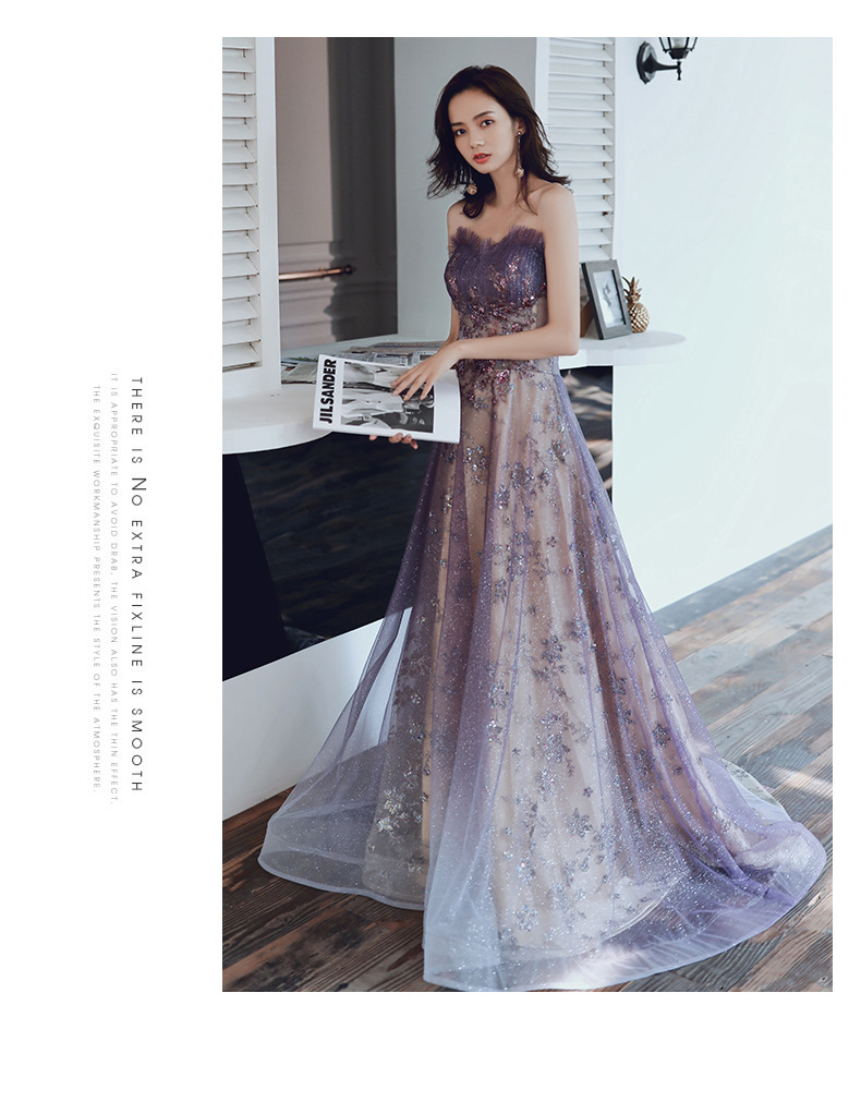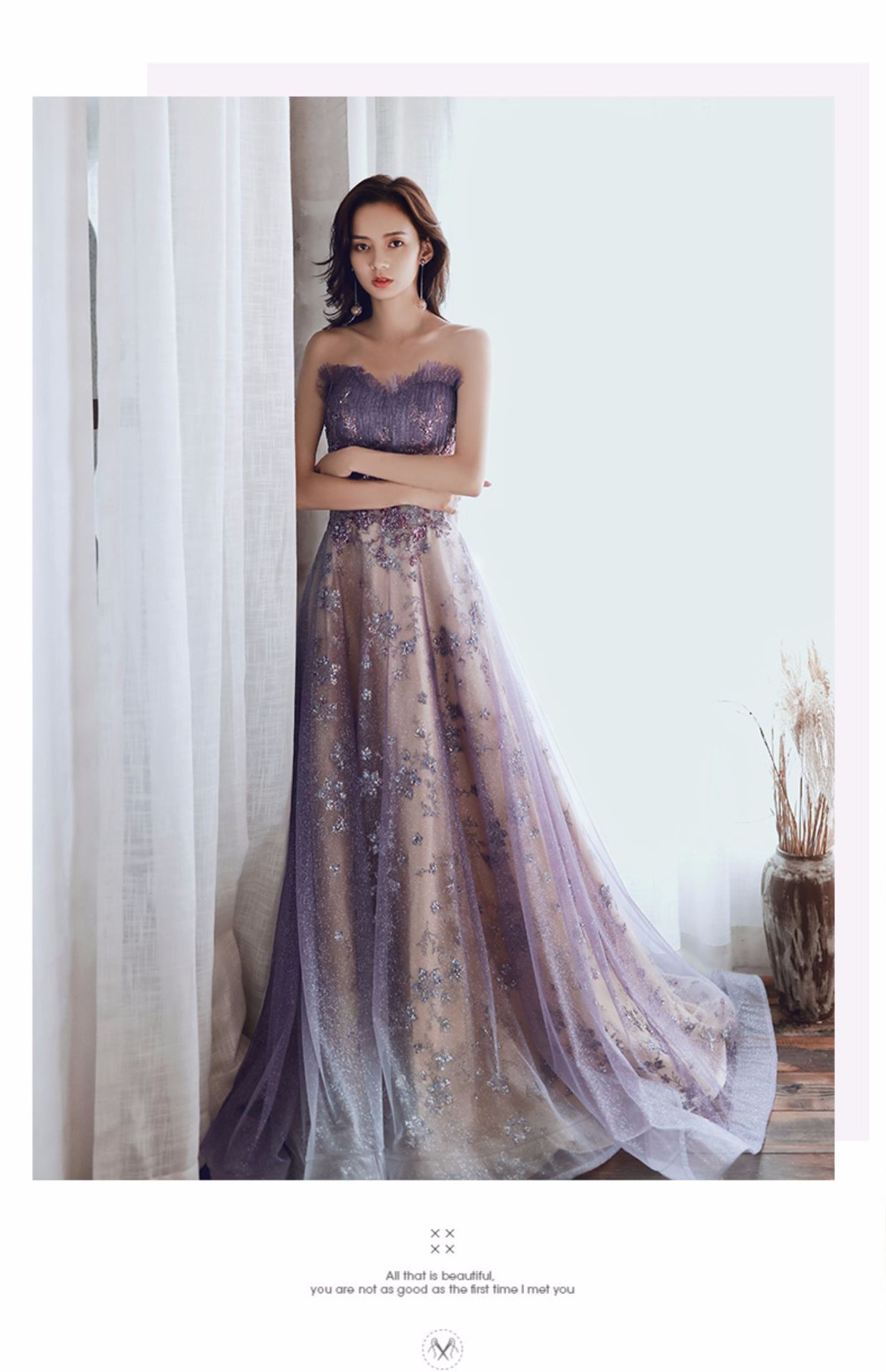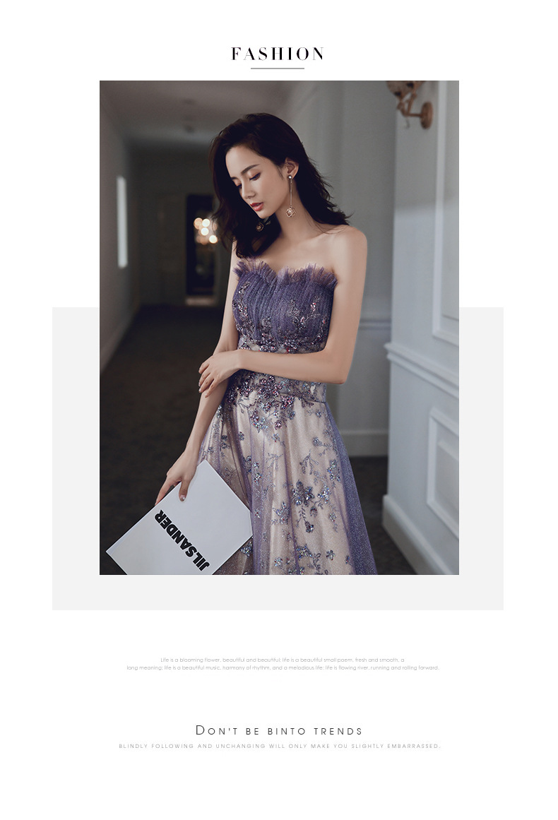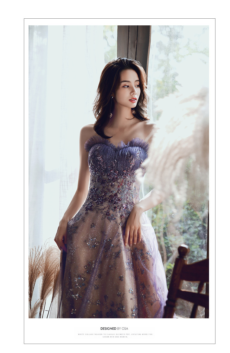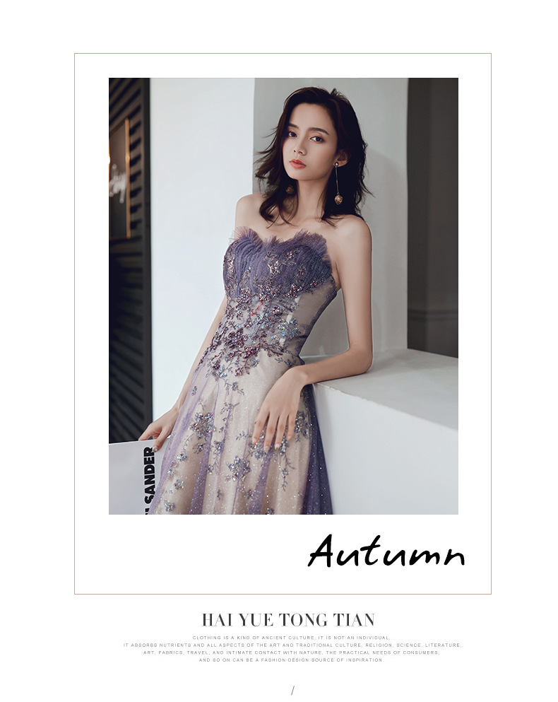 Best-selling new banquet evening dress 2022 new autumn and winter purple temperament thin dreamy long tube top dress skirt female