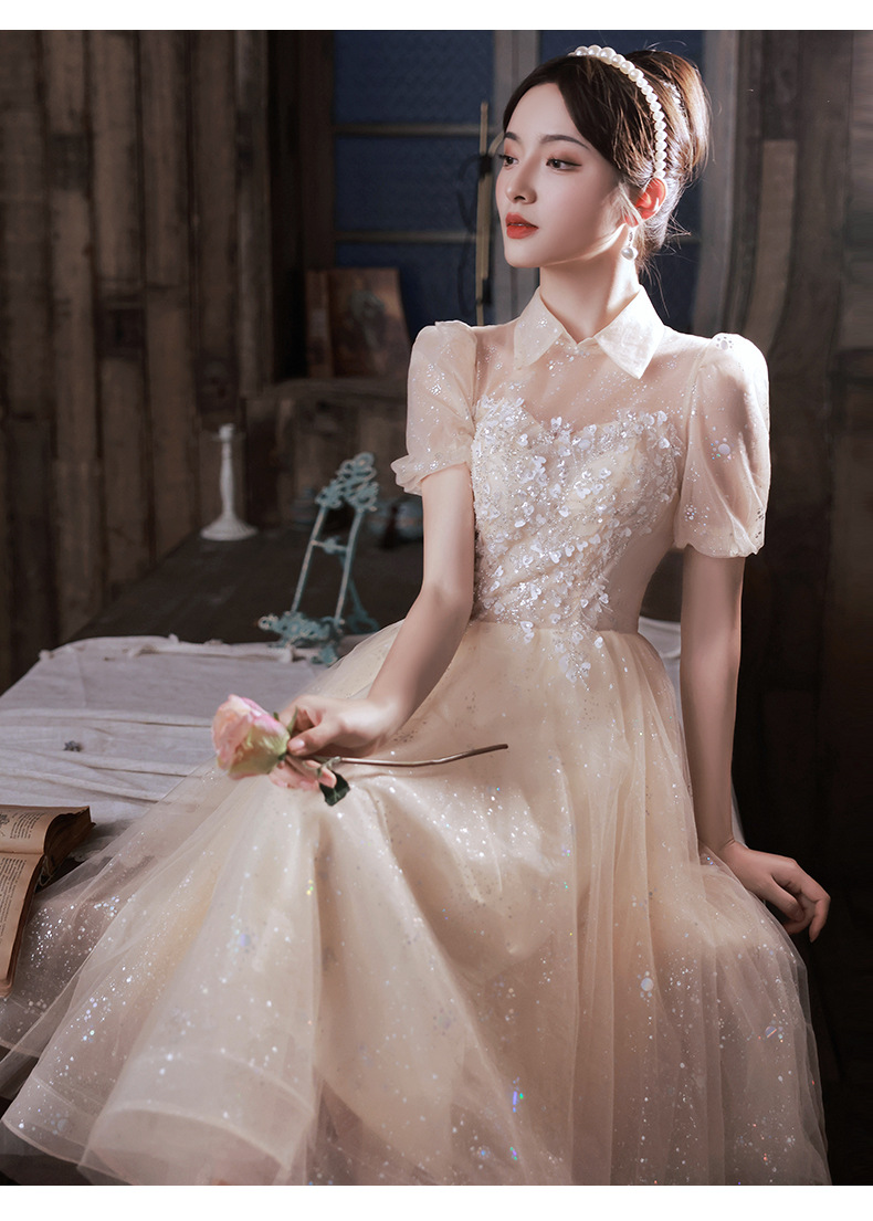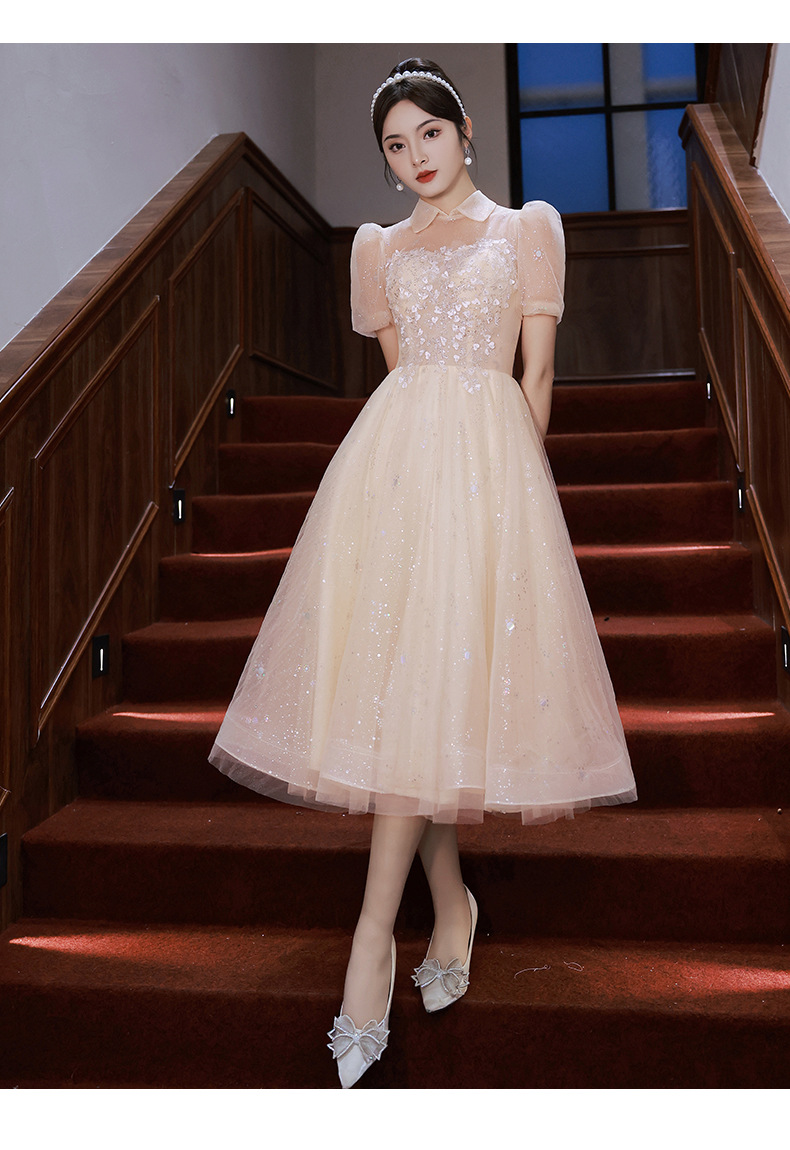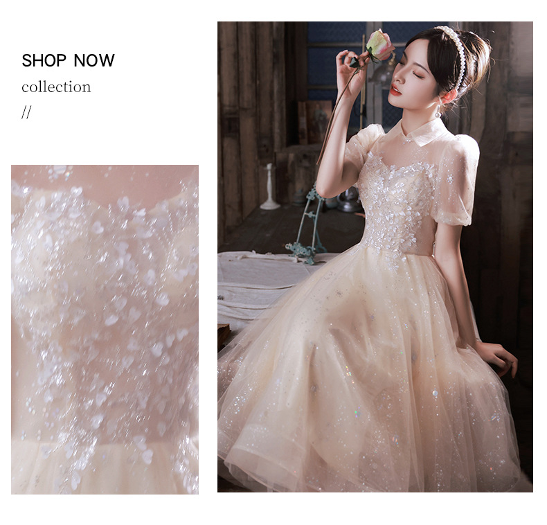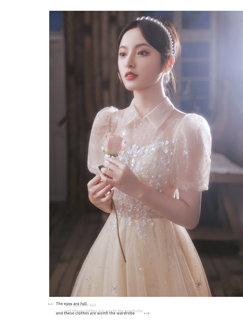 Best-selling new champagne evening dress women's light luxury high-end banquet temperament high-end birthday adult gift small dress