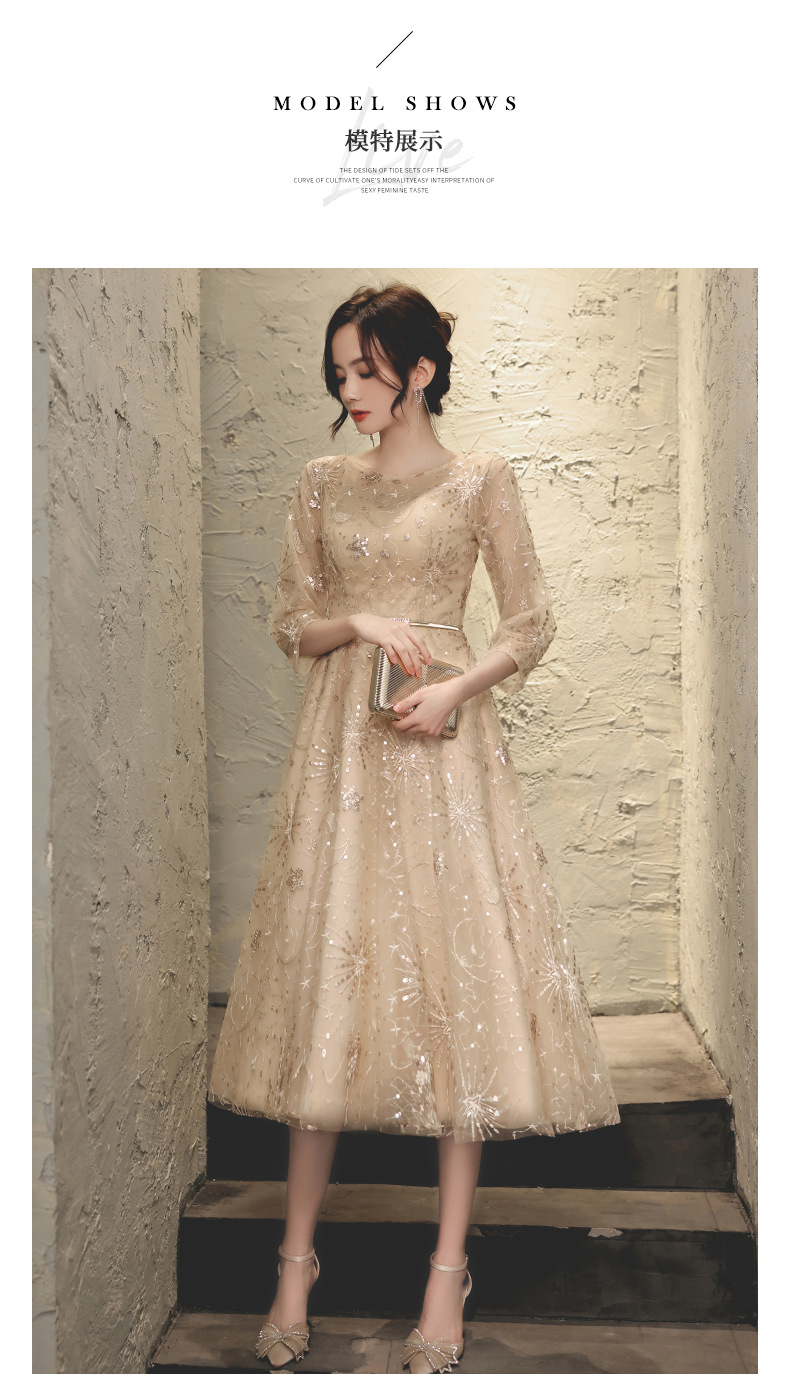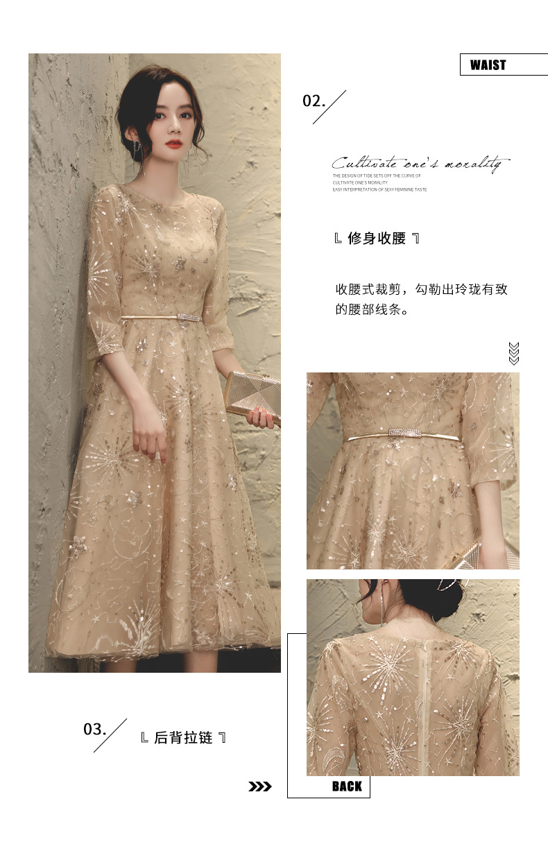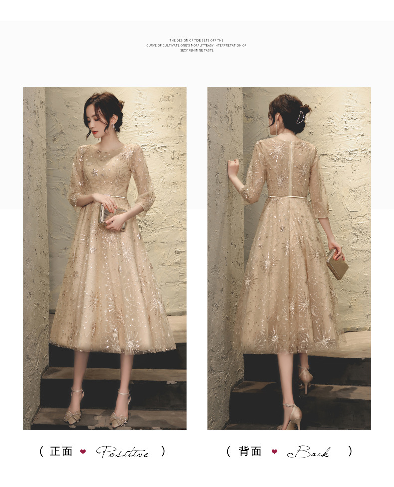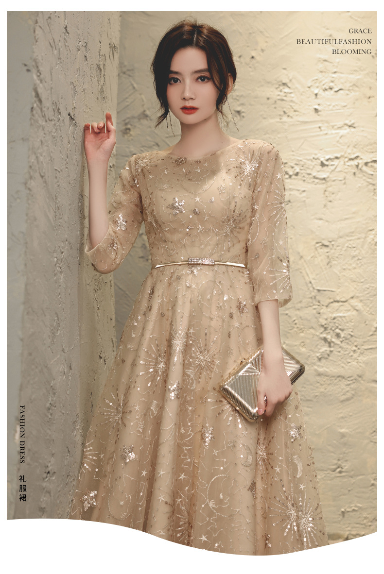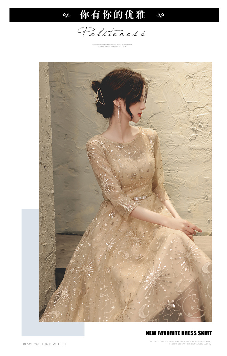 Best-selling new evening dress female banquet 2023 new champagne color temperament celebrity spirit annual meeting small graduation can usually wear