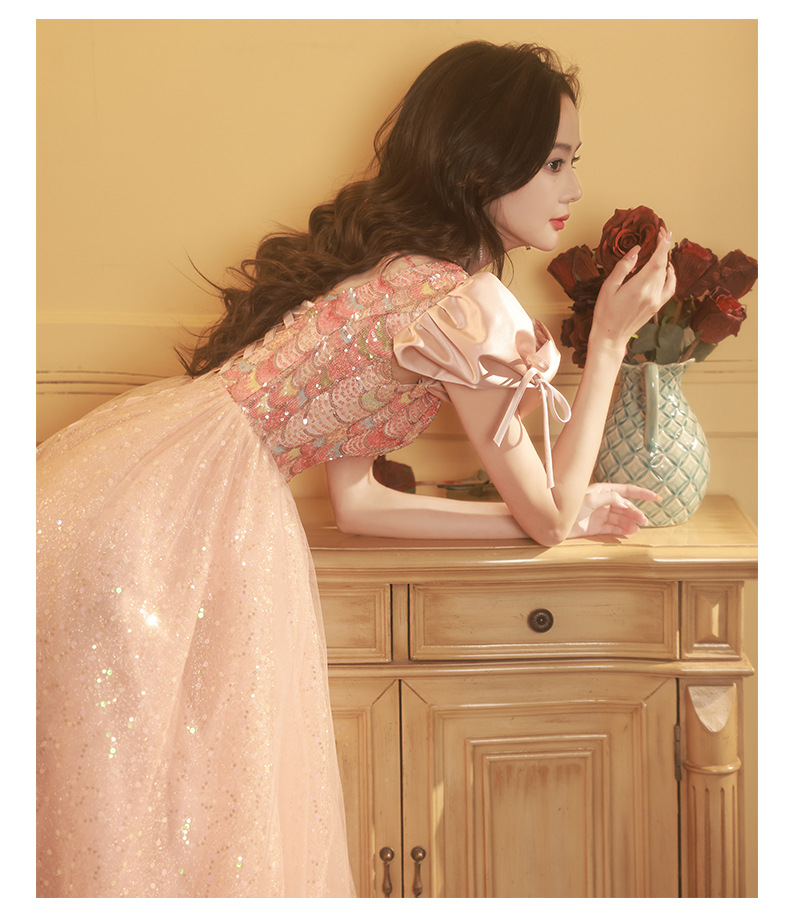 Best-selling new high-end evening dress female 2023 new high-level sense art test performance host design sense lace annual meeting banquet dress