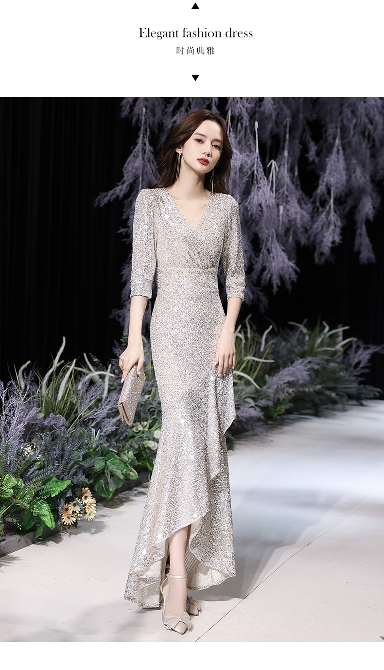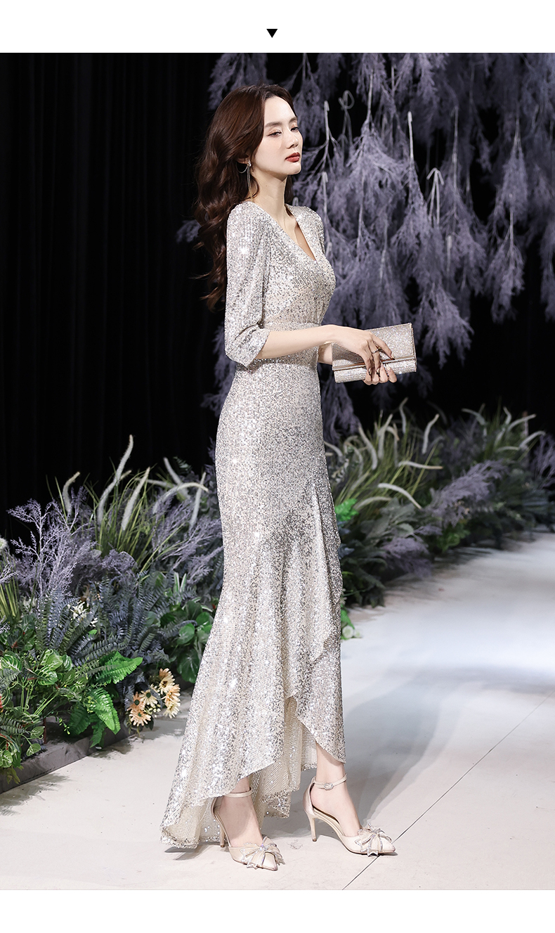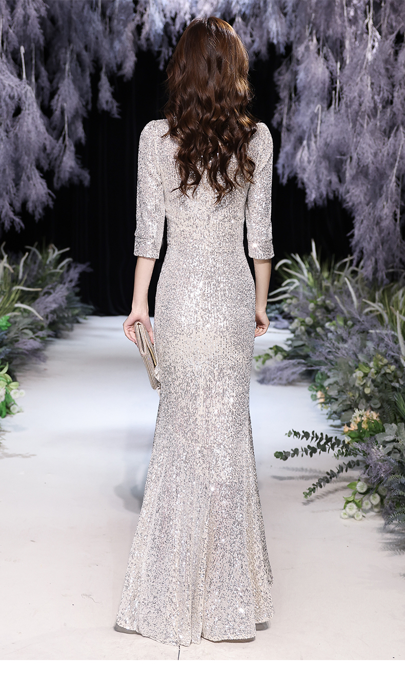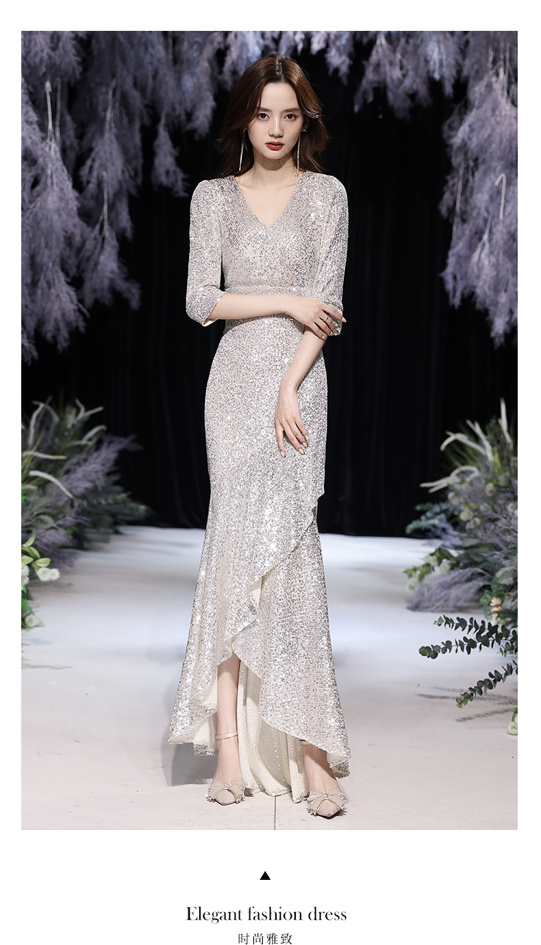 Best-selling new high-end evening dress skirt female 2023 new temperament banquet noble fishtail silver celebrity host high-end elegance