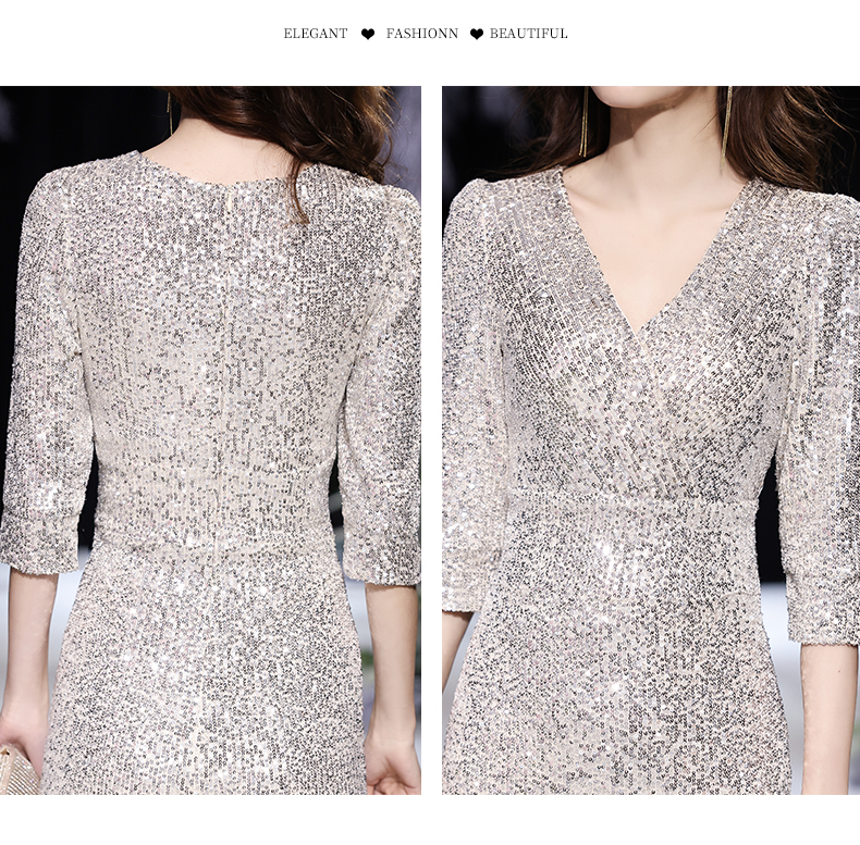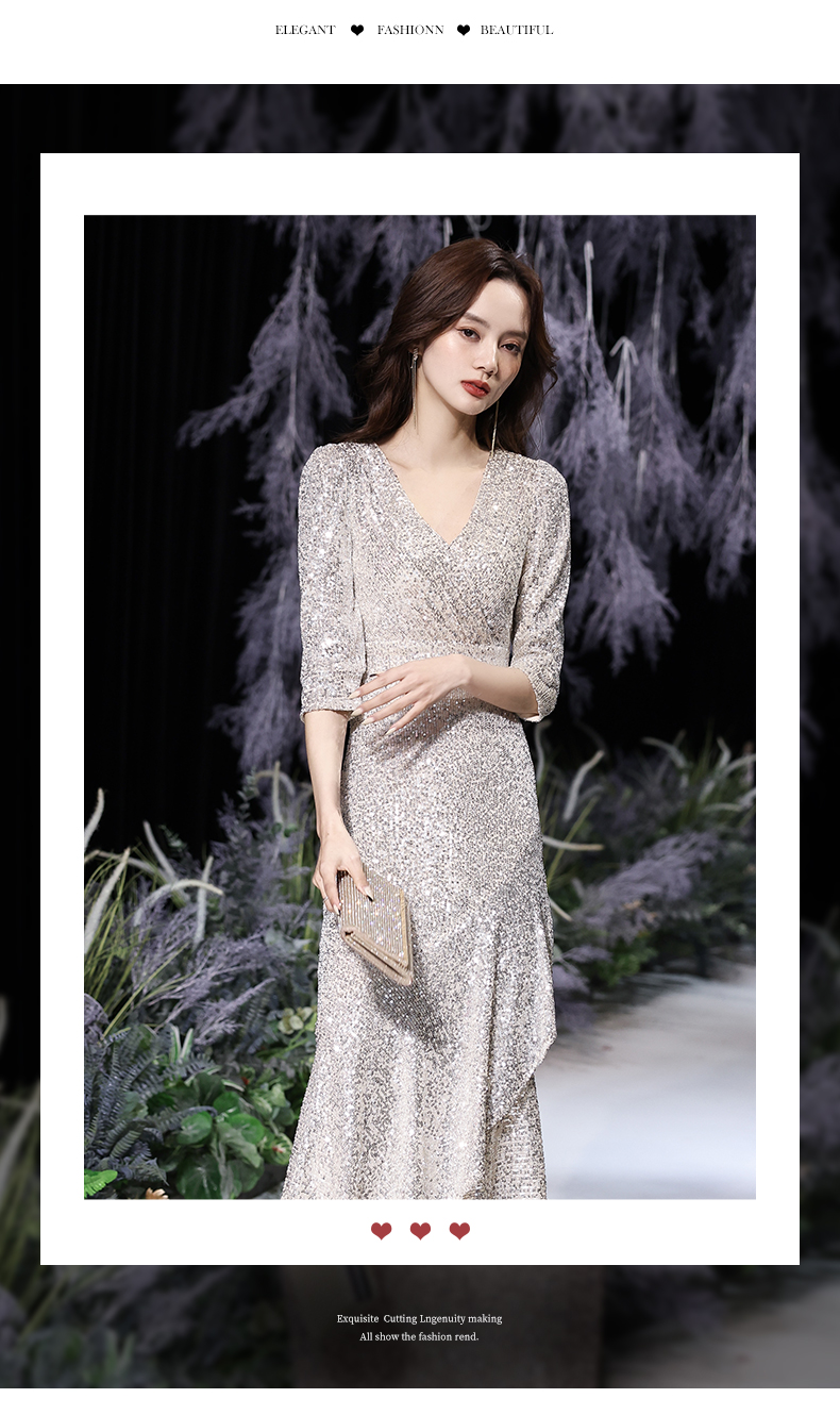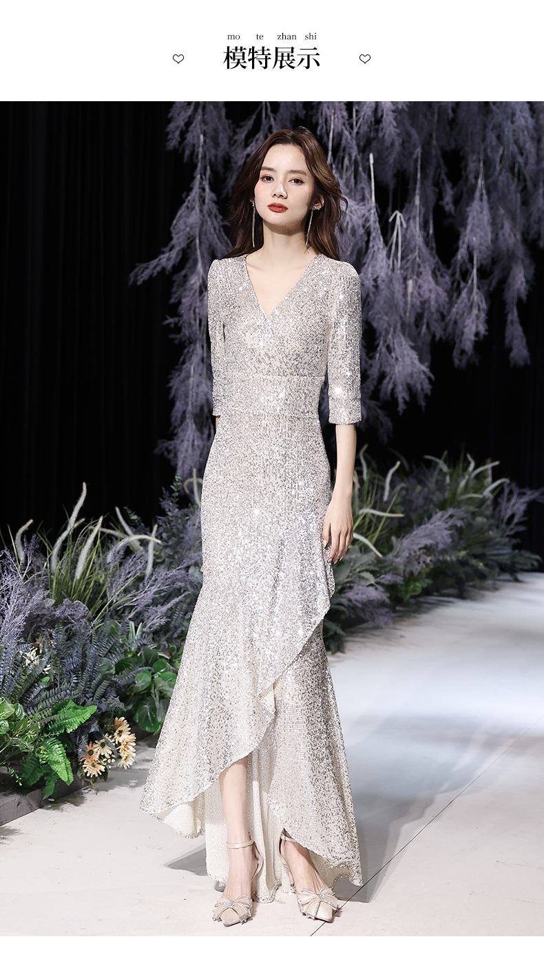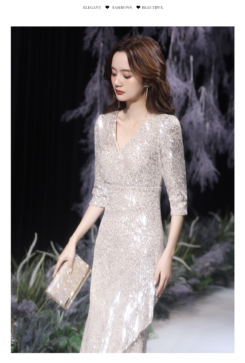 Best-selling new high-end evening dress skirt female 2023 new temperament banquet noble fishtail silver celebrity host high-end elegance