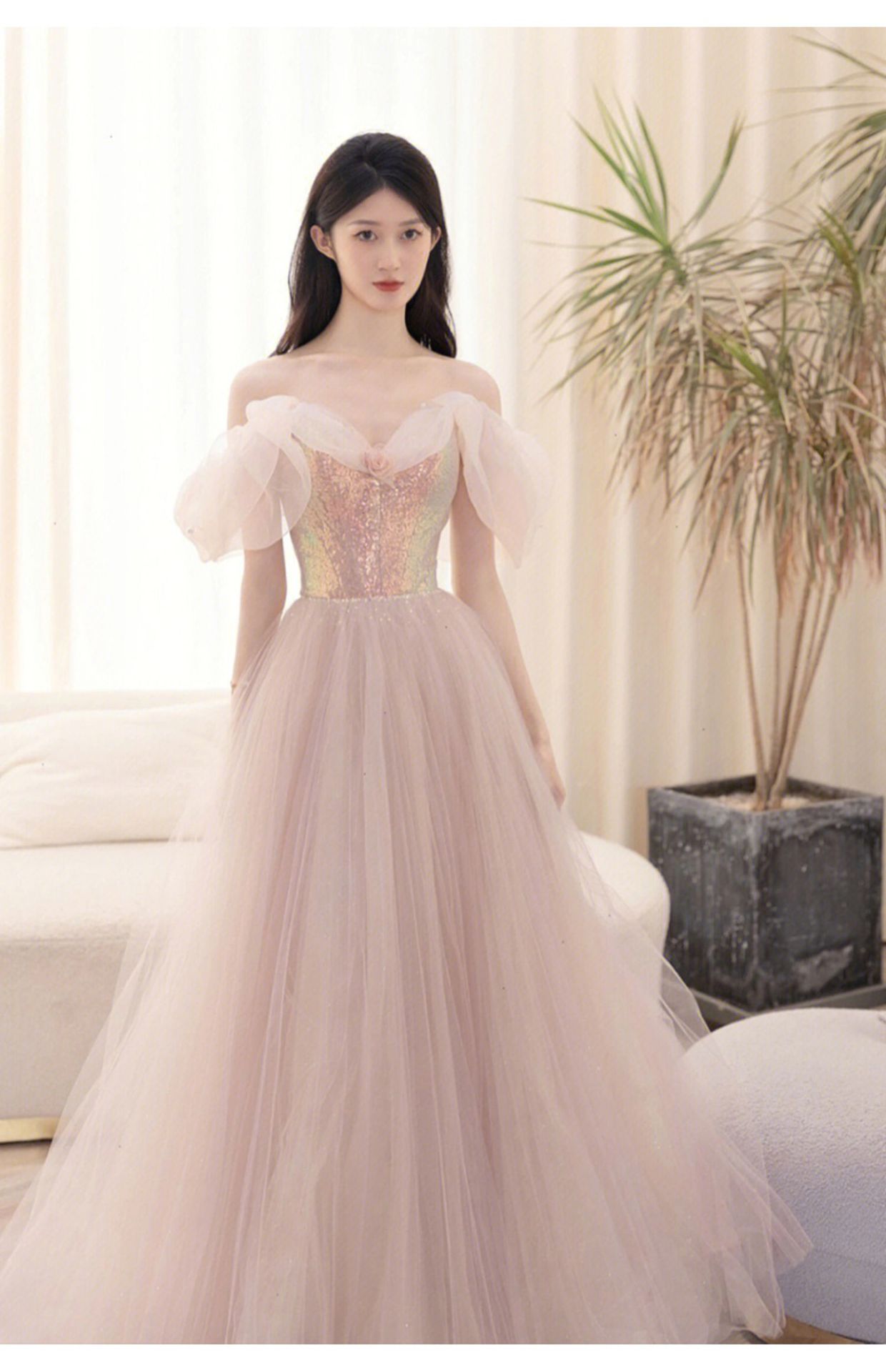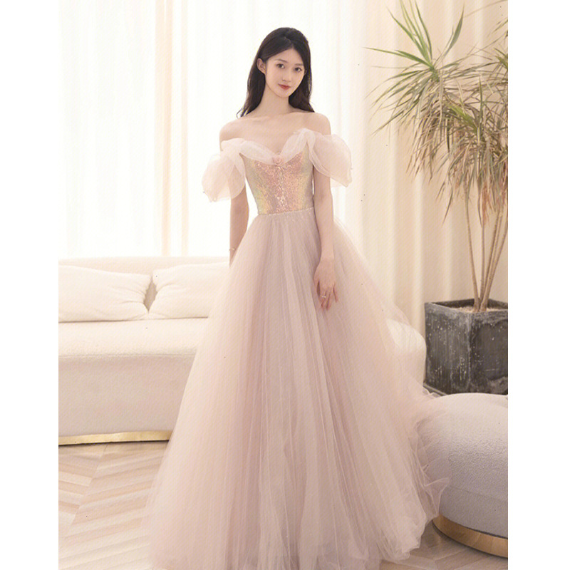 Best-selling new pink bridesmaid dress 2023 new high-end evening dress one-shoulder light luxury niche French engagement dress for women