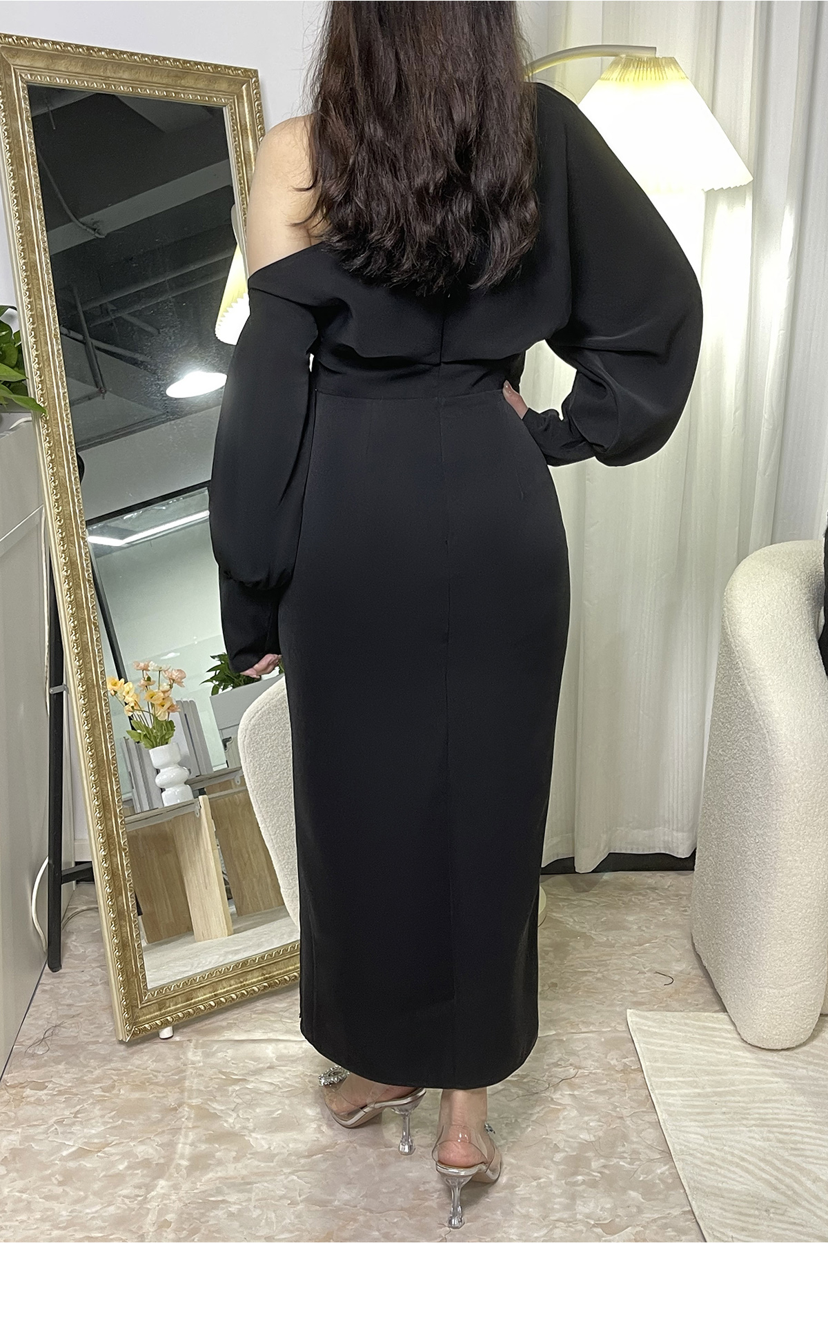 Black elegant hot diamond waist side slit dress
