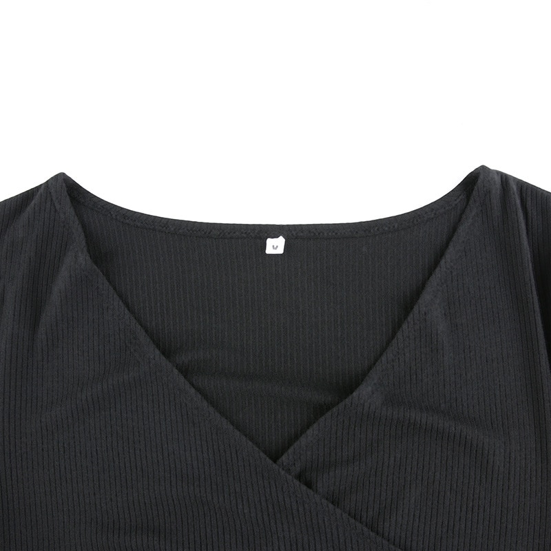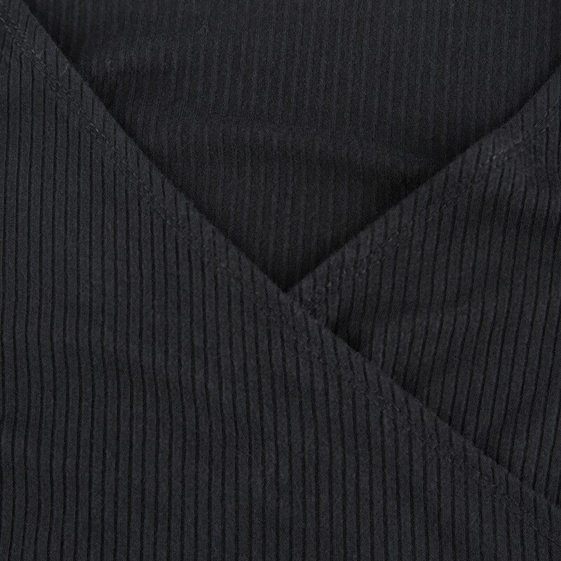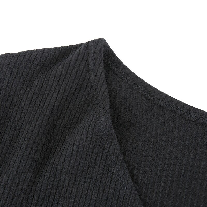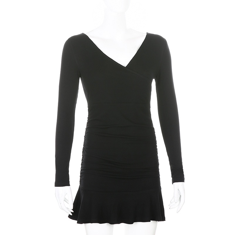 Black Knitted Ribbed Midi Dresses For Women V Neck Elegant Korean Clothes Long Sleeve Ruffles Bodycon Dresses Autumn