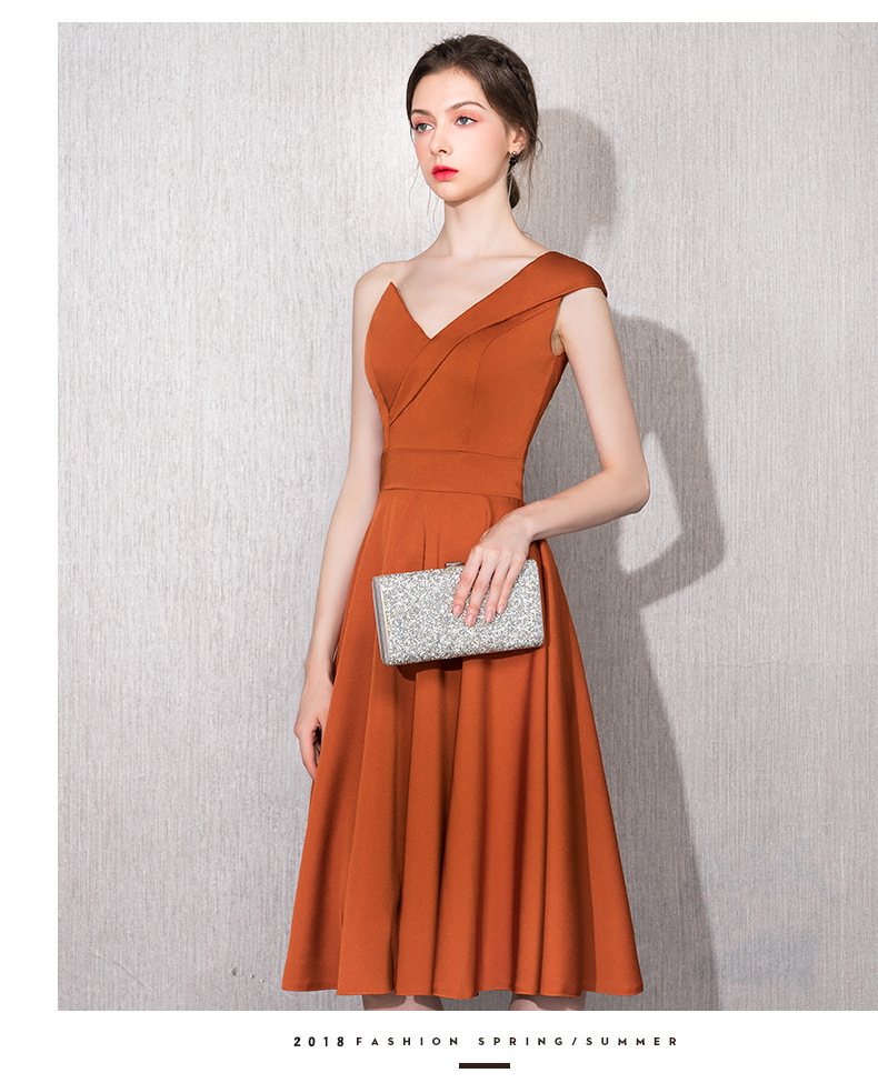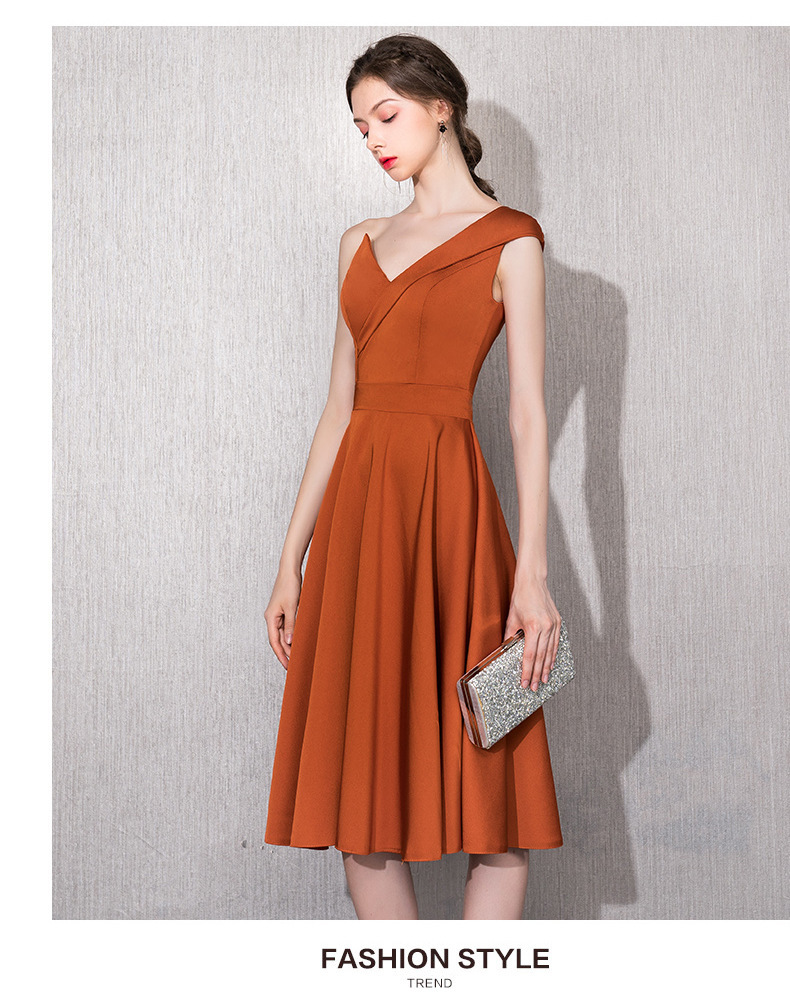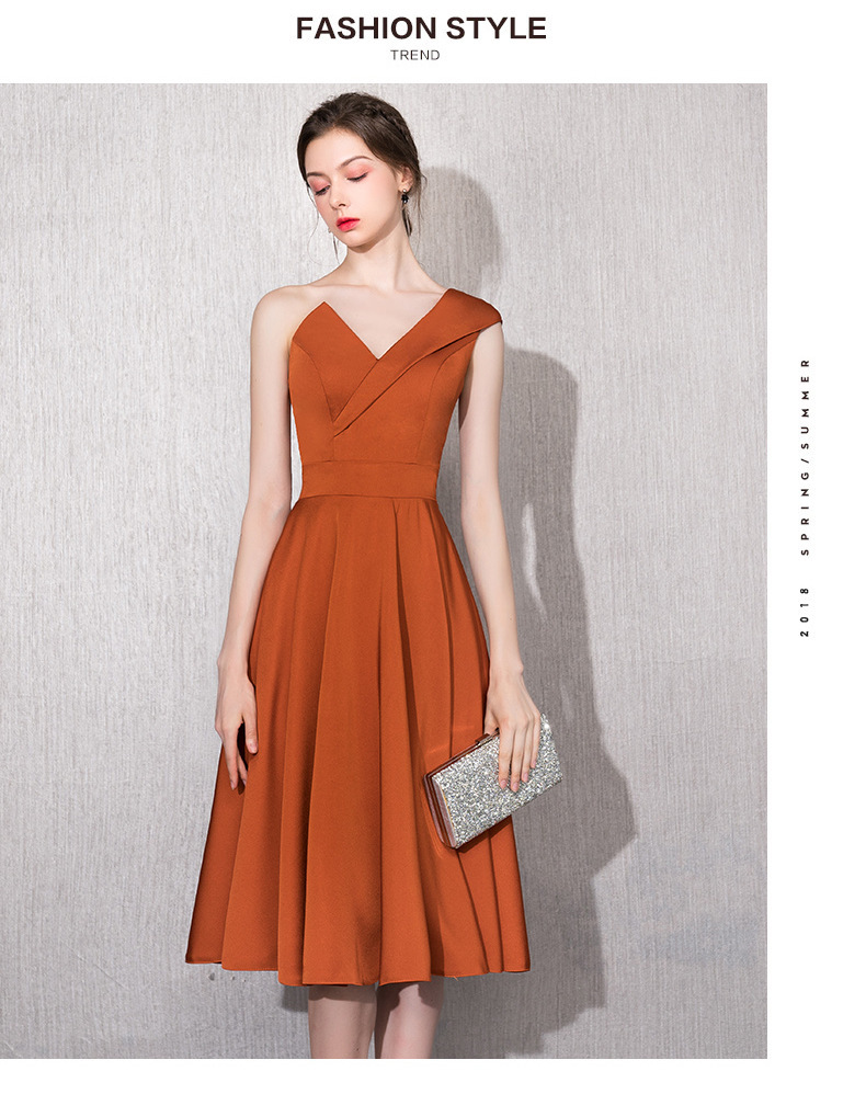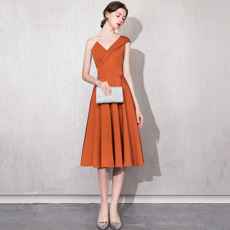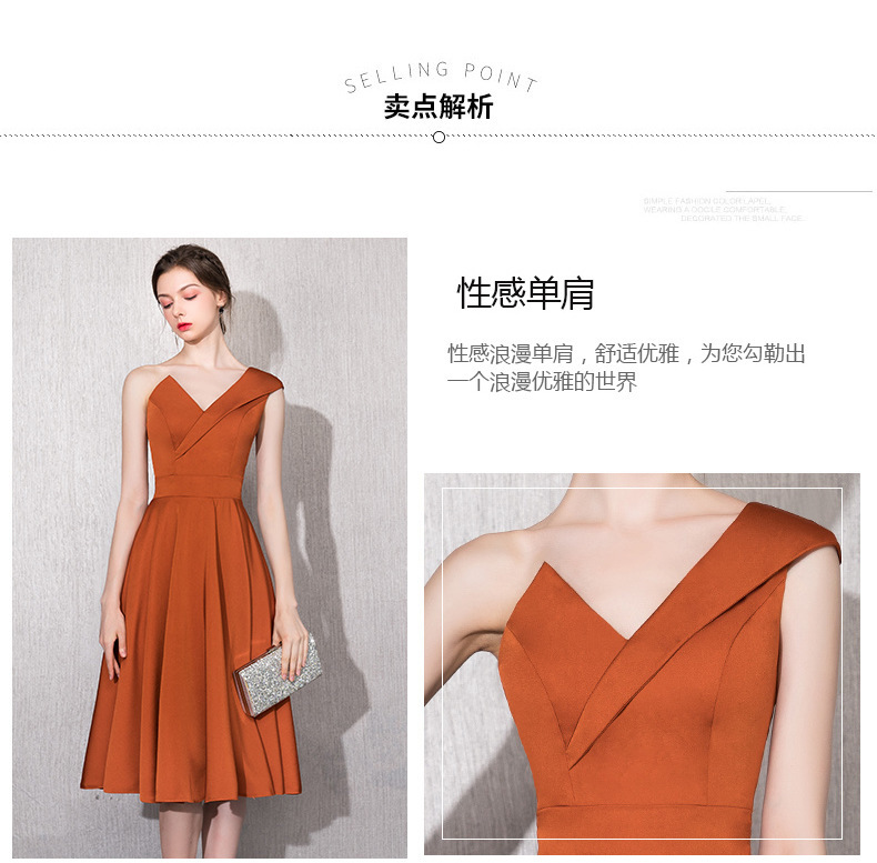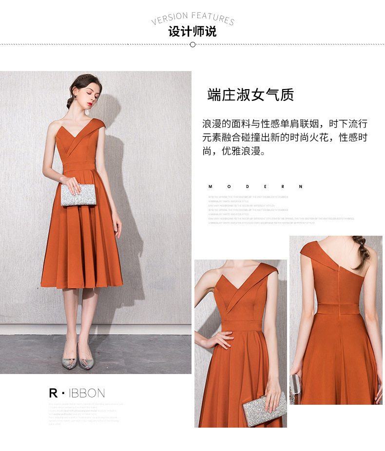 Caramel-colored host one-shoulder model catwalk satin 18-year-old adult ceremony can usually wear bridesmaids annual meeting dress