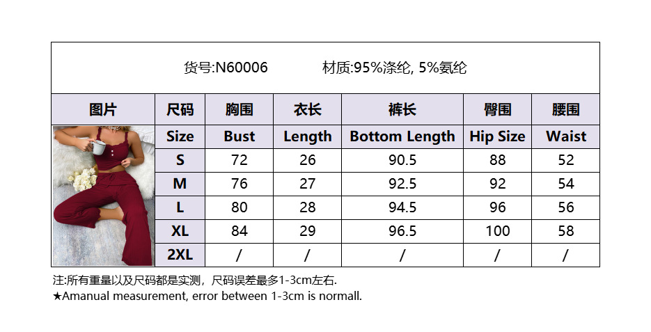 | Product Size | Bust/Chest(cm) | Length(cm) | Pants length(cm) |