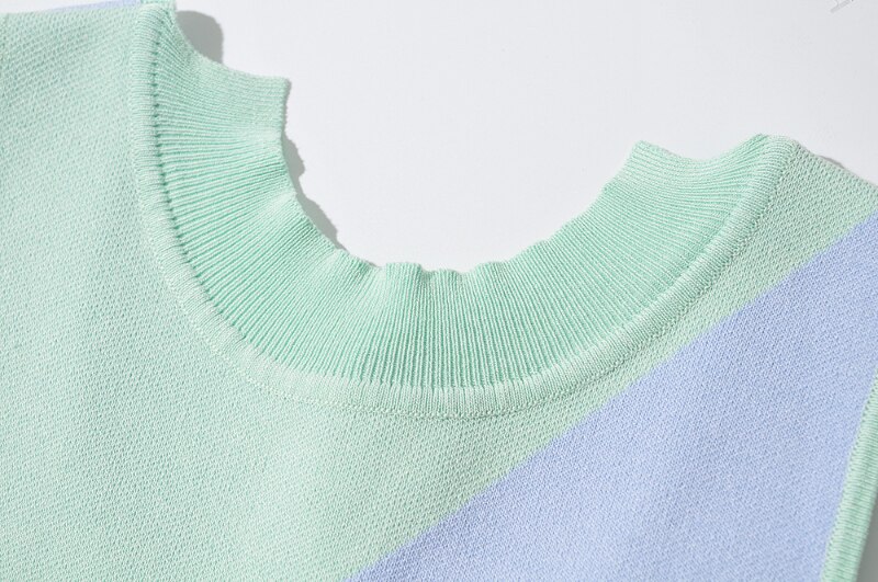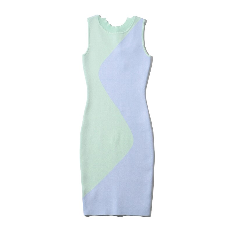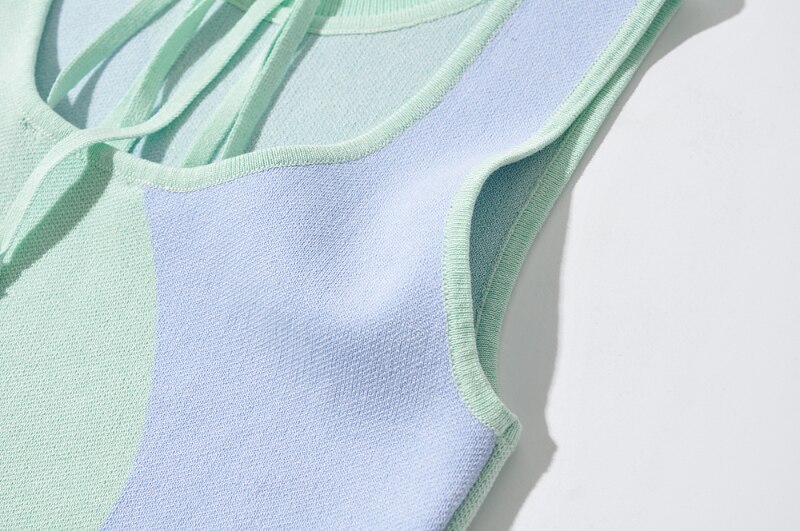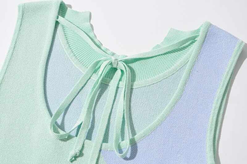 Chic Women Patchwork Knitted Bodycon Dress Sleeveless Bow Tie Stylish Mini Dresses Wear On Both Side Summer Sundress