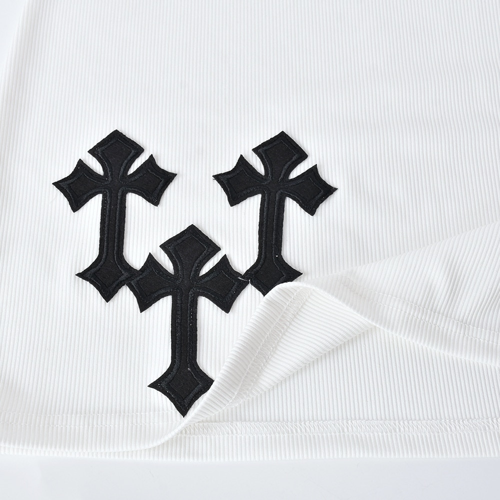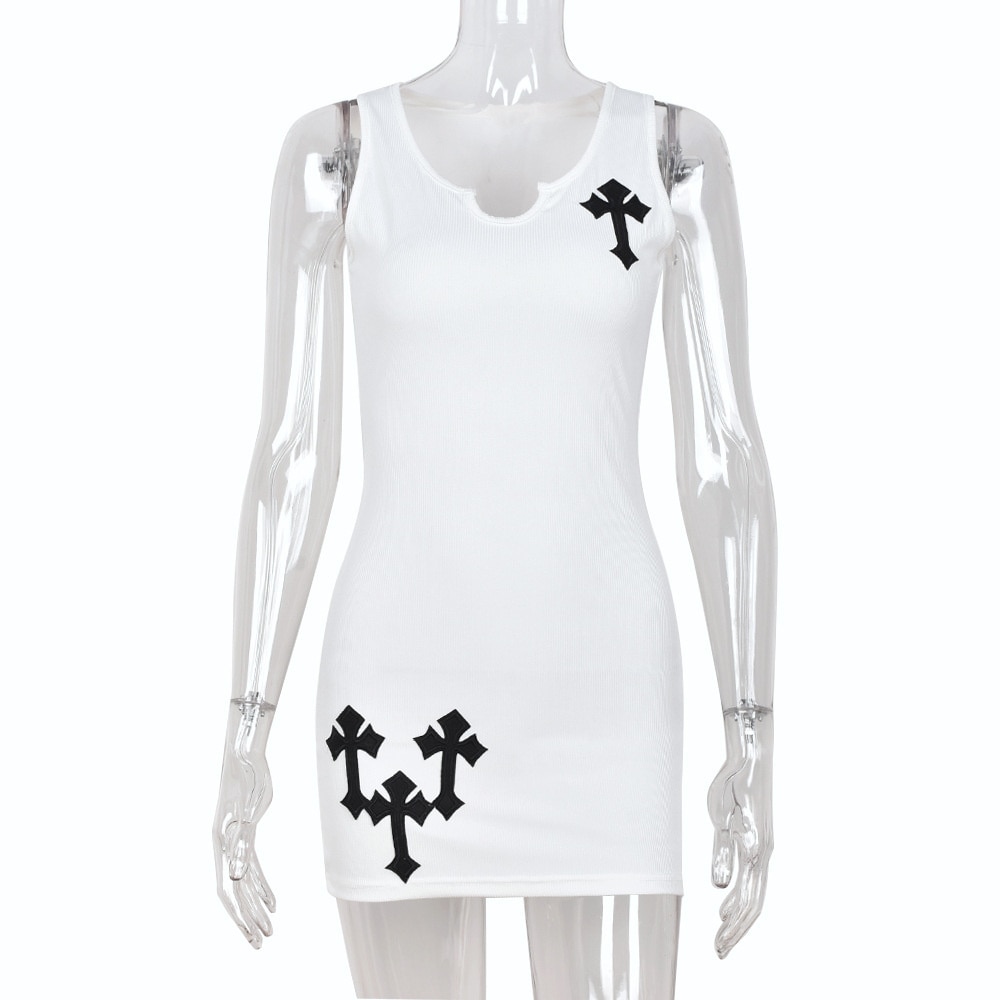 Cross Printed White Mini Dress For Women Sleeveless V-Neck Basic Tank Dress Streetwear Outfits Party Bodycon Dresses