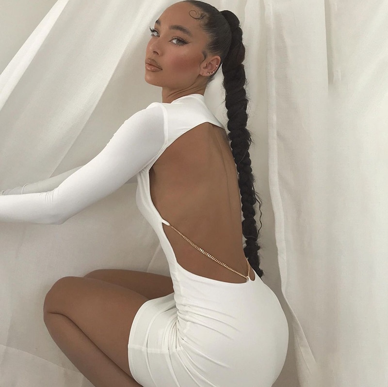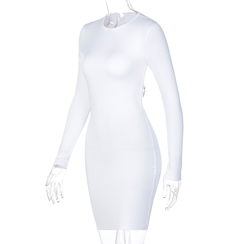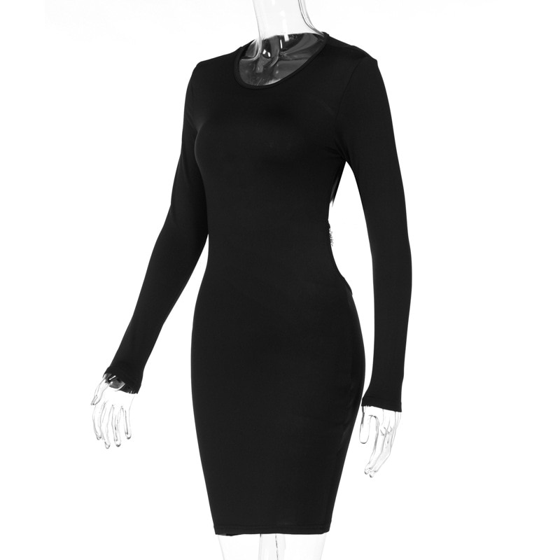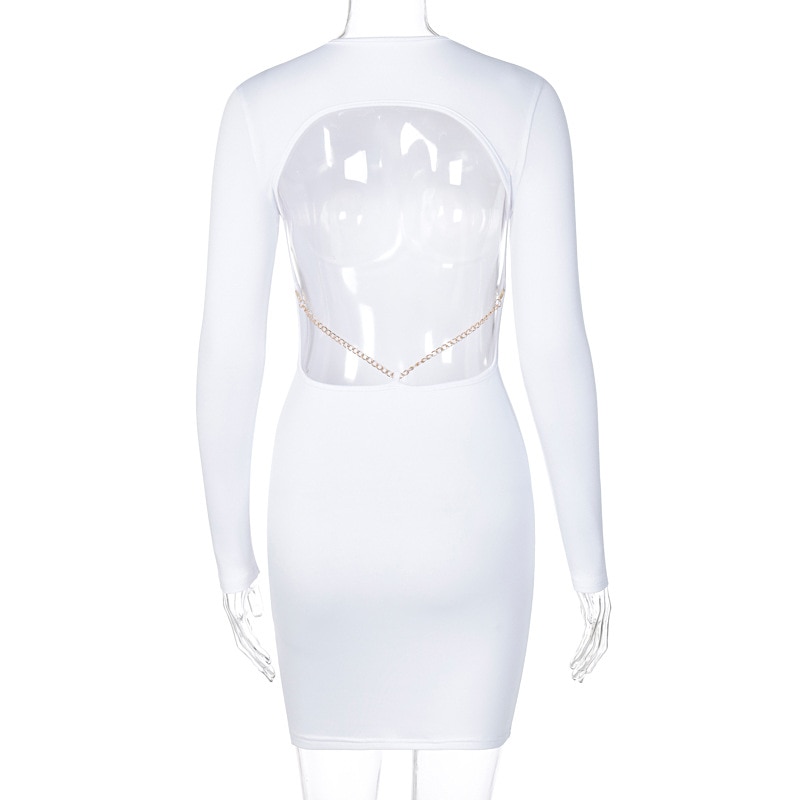 Dulzura Hollow Out Chain Women Long Sleeve Mini Dress Bodycon Sexys Streetwear Party Elegant 2020 Autumn Winter Club Solid Slim