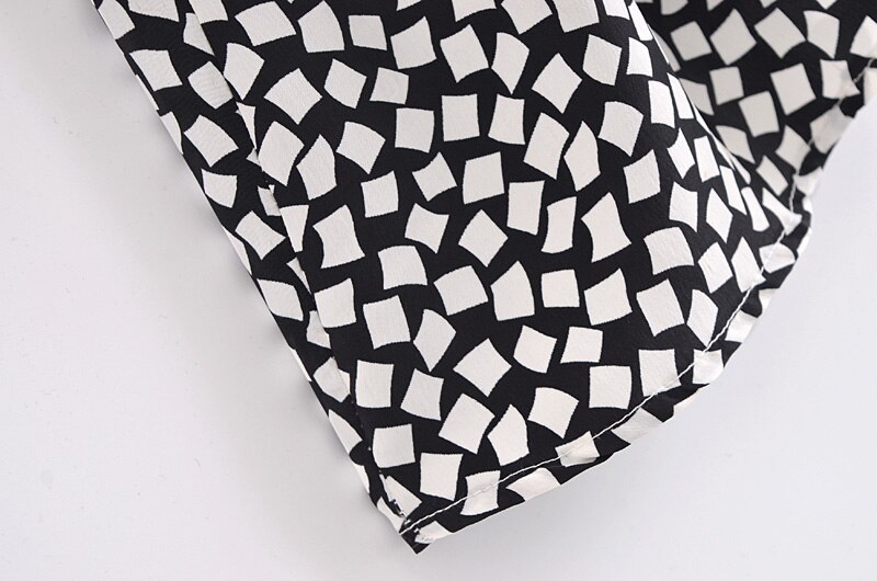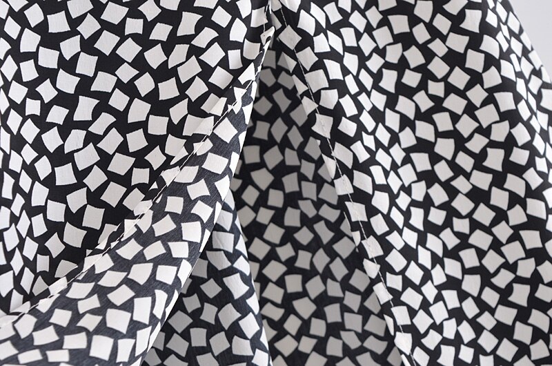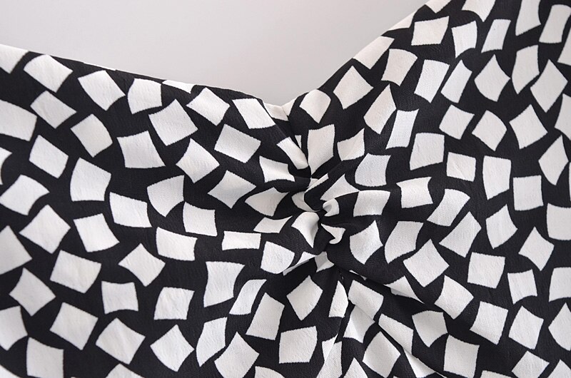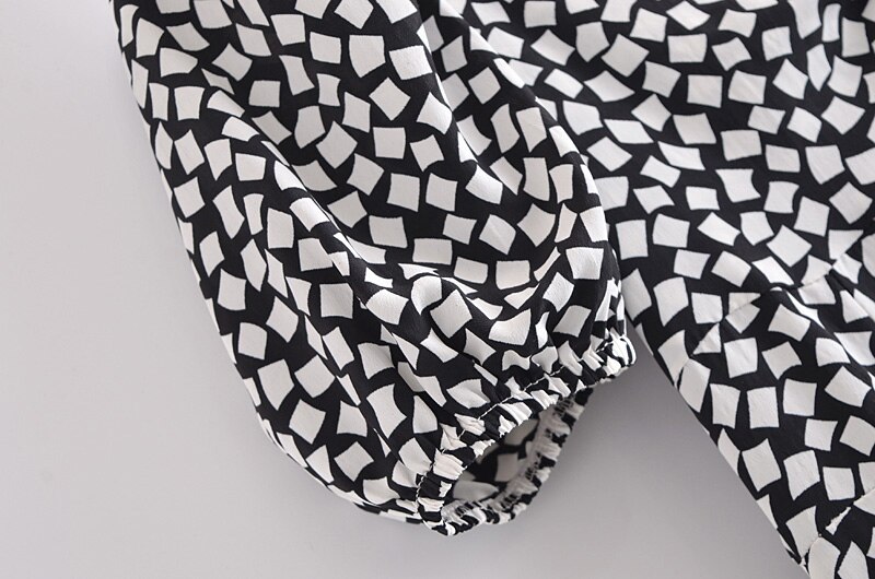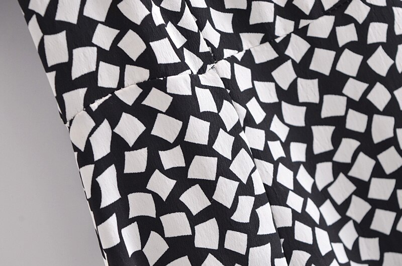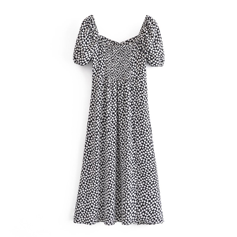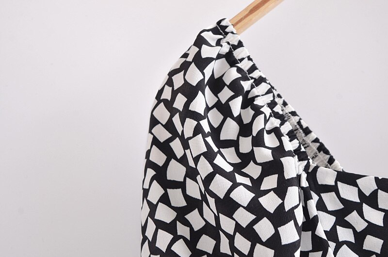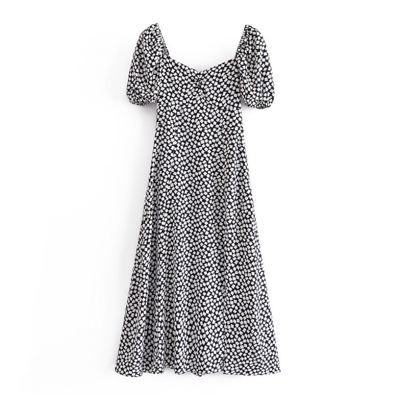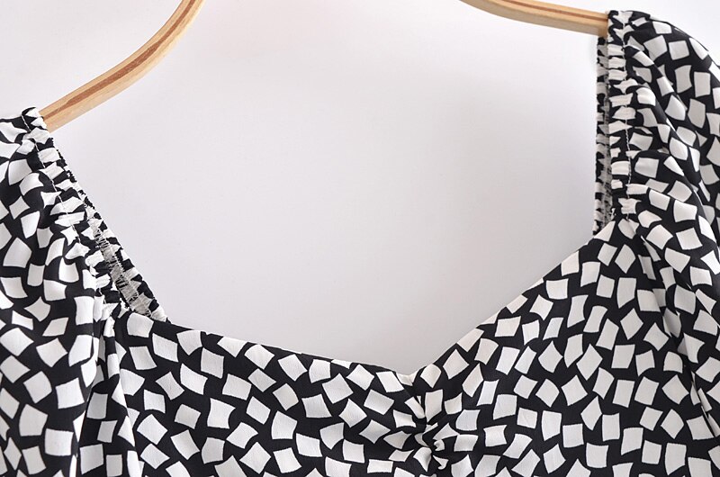 Elegant A Line Geometric Print Midi Dress Women Puff Short Sleeve Vintage Dress Chic Split Dresses Summer Vestidos