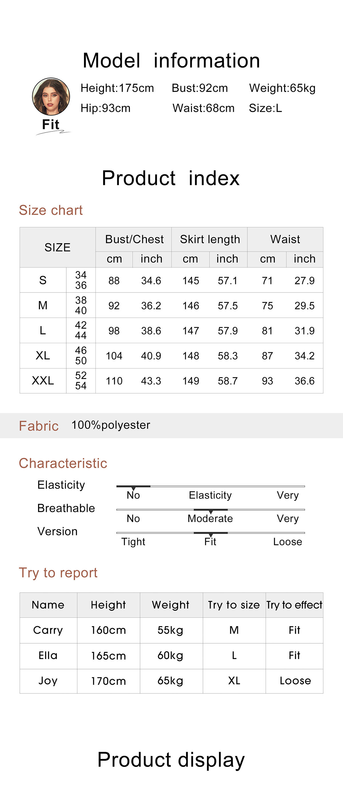 | Product Size | Bust/Chest(cm) | Skirt length(cm) | Waist(cm) |