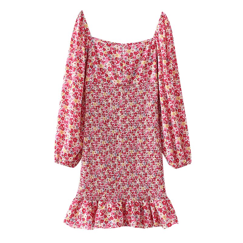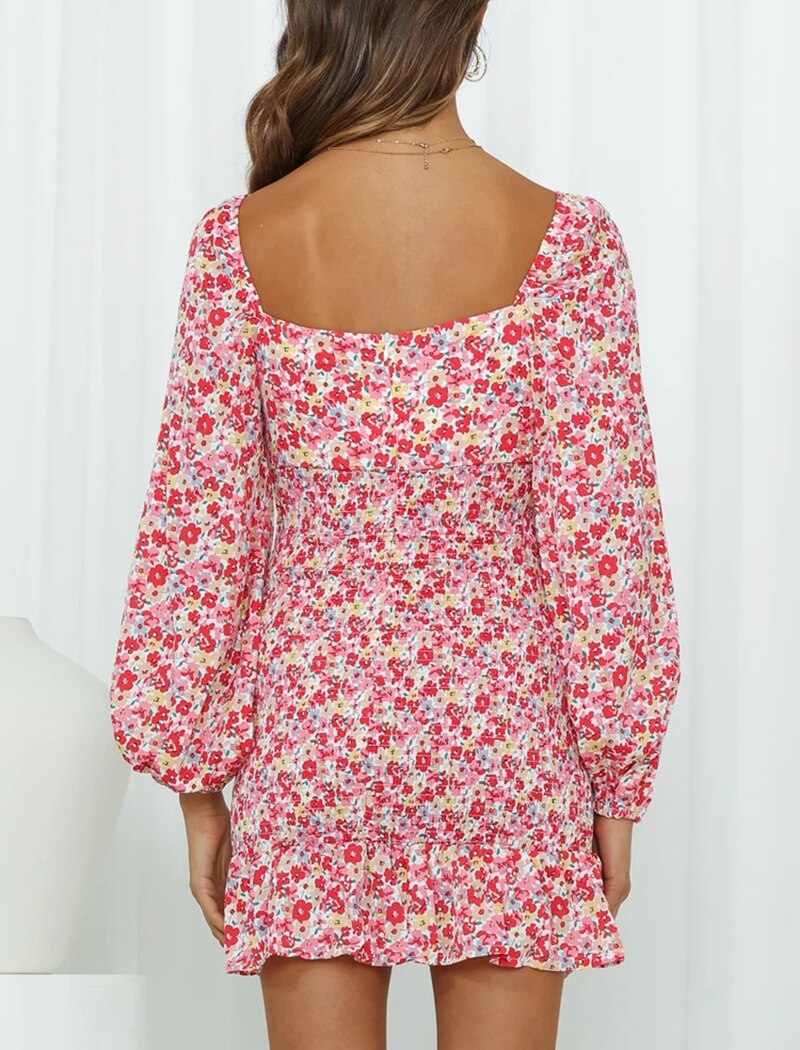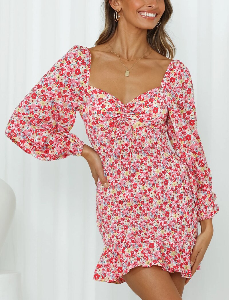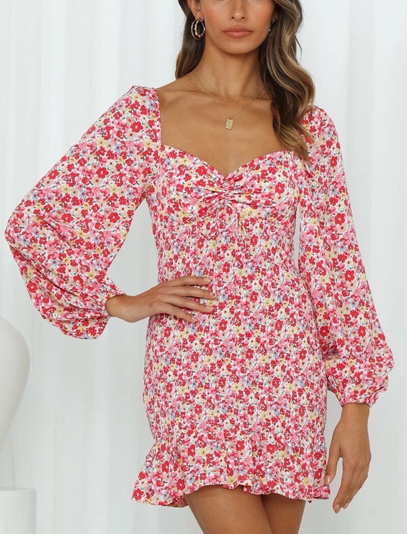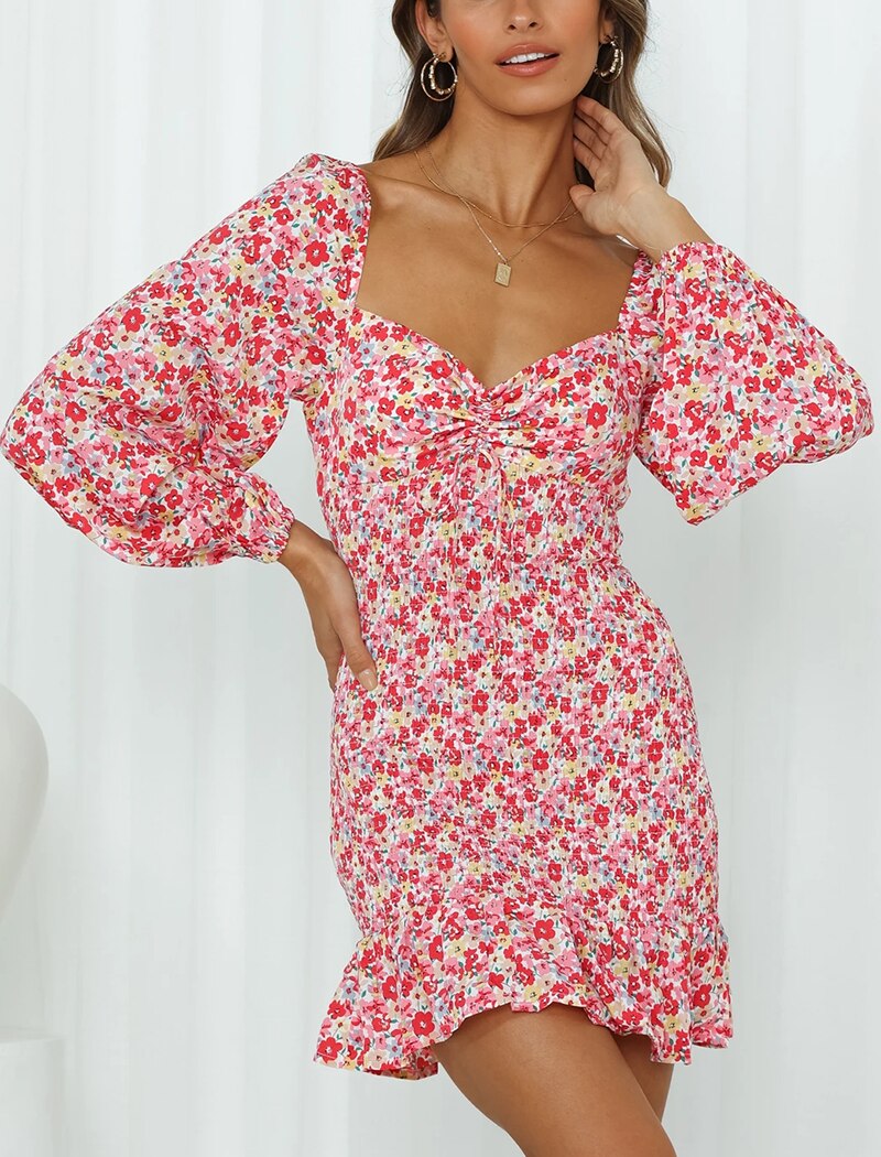 Elegant Floral Printed Mini Dresses Women Autumn Puff Long Sleeve Dress Female Chic Bodycon Dresses Vestidos